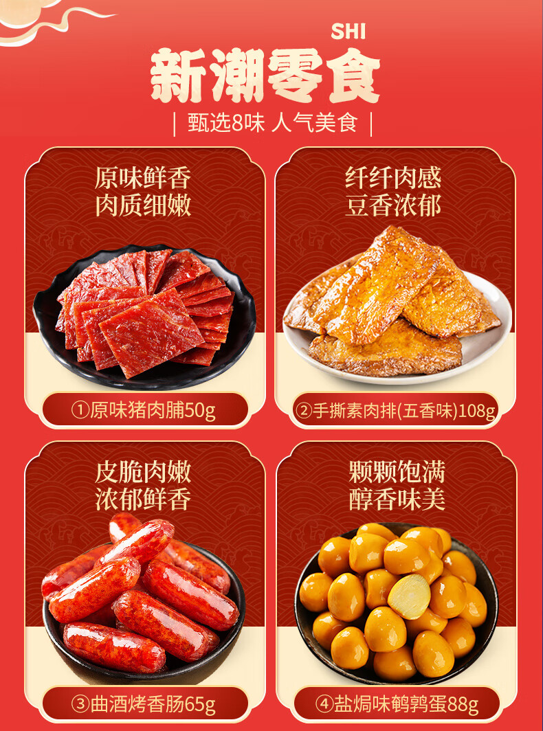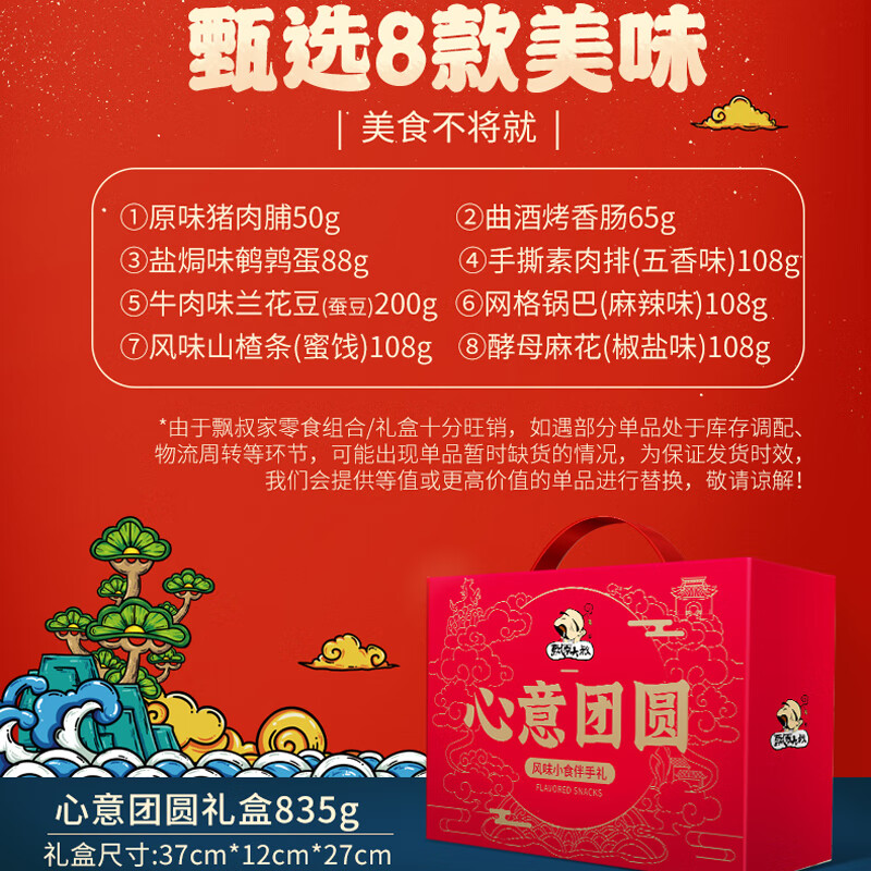 飘零大叔零食大礼包 猪肉脯休闲食品精美礼盒 送礼佳品年货节 心意团圆礼盒835g