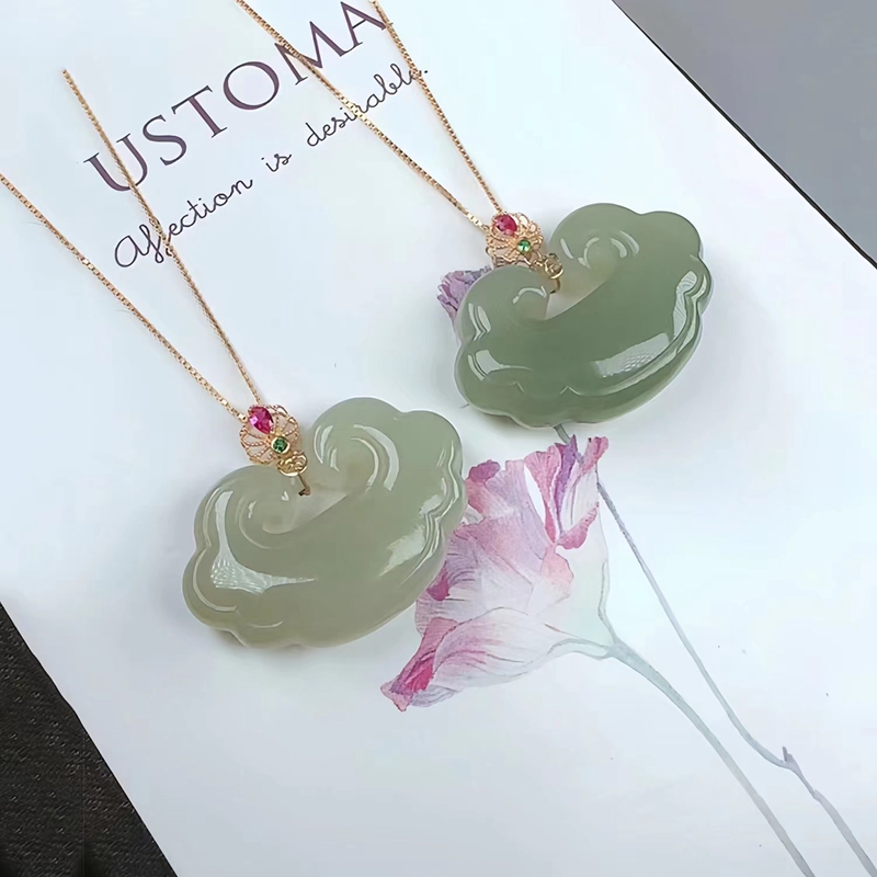 马传玉和田吊坠MCY015玉是玉如意形状镶嵌部分18K金镶材质链子材质925银镀金材质【每品一证】【新疆/西藏/青海不发货】