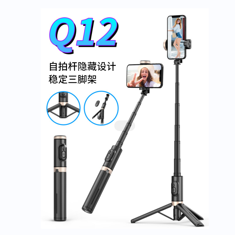 LOOK自拍杆三脚架 伸缩旅游手机支架落地神器Q12 自拍神器 多功能便携电池款