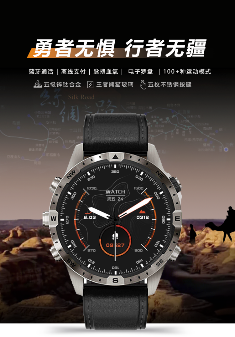 GWALK极沃客 GT45运动款智能蓝牙通话手表多功能运动心率血压音乐通用代计步健康防水