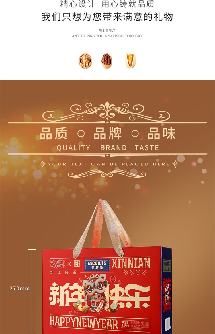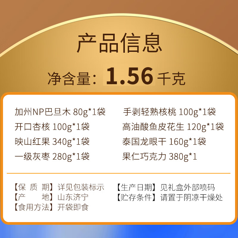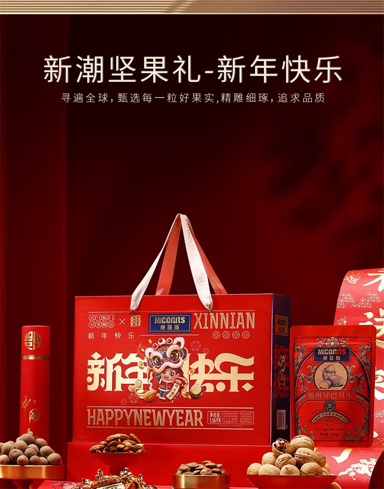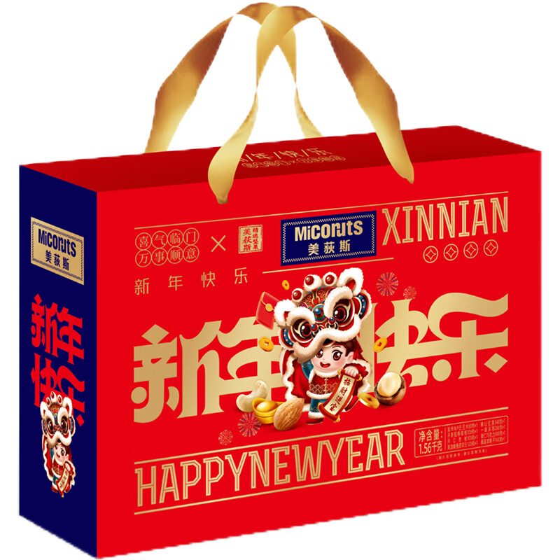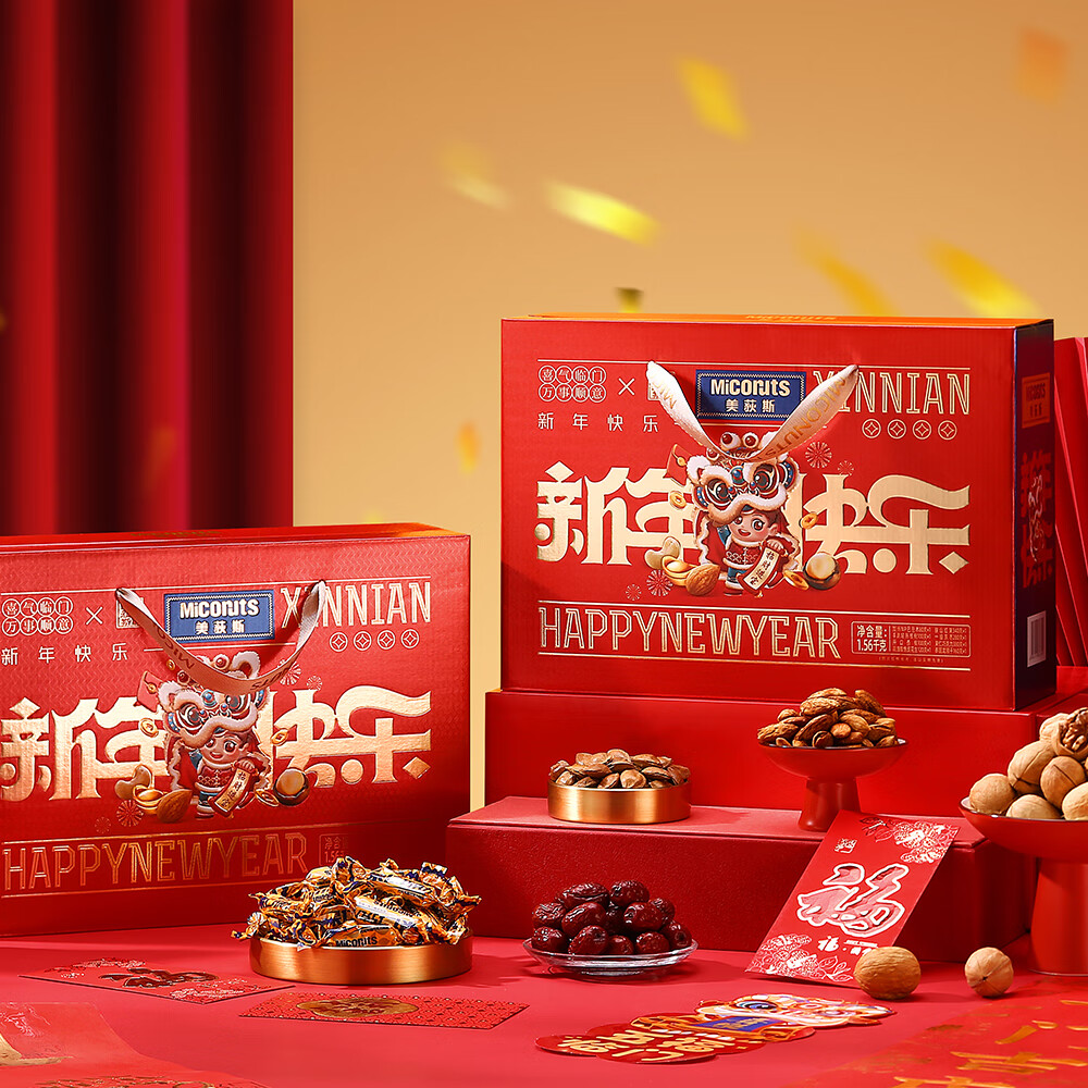 美荻斯坚果礼盒新年快乐1560g年货礼盒干果大礼包坚果礼春节礼品福利