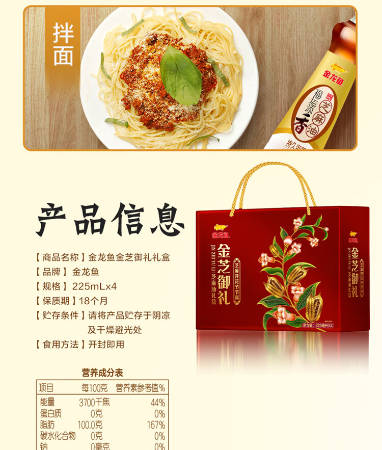 金龙鱼金芝御礼芝麻油礼盒225ml*4 新年礼物