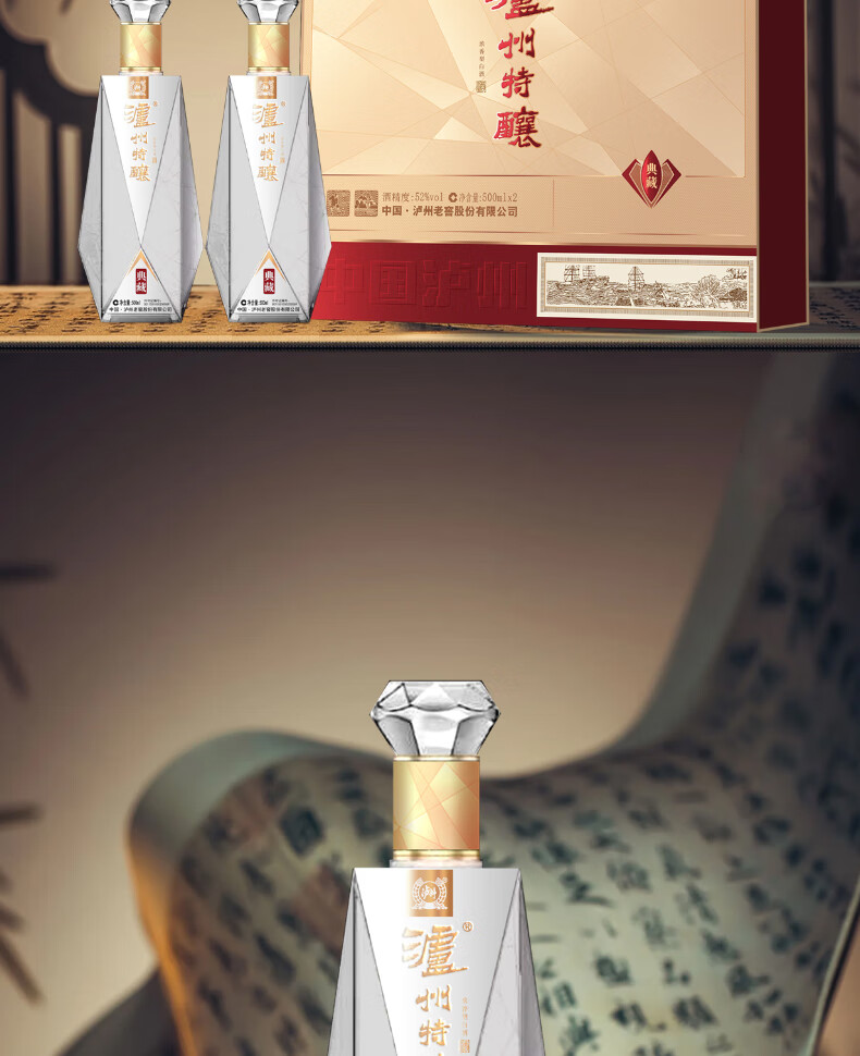 【500ml*2瓶】泸州老窖股份出品 泸州特酿酒典藏 浓香型52°白酒礼盒装 过年送礼年货 赠手提袋