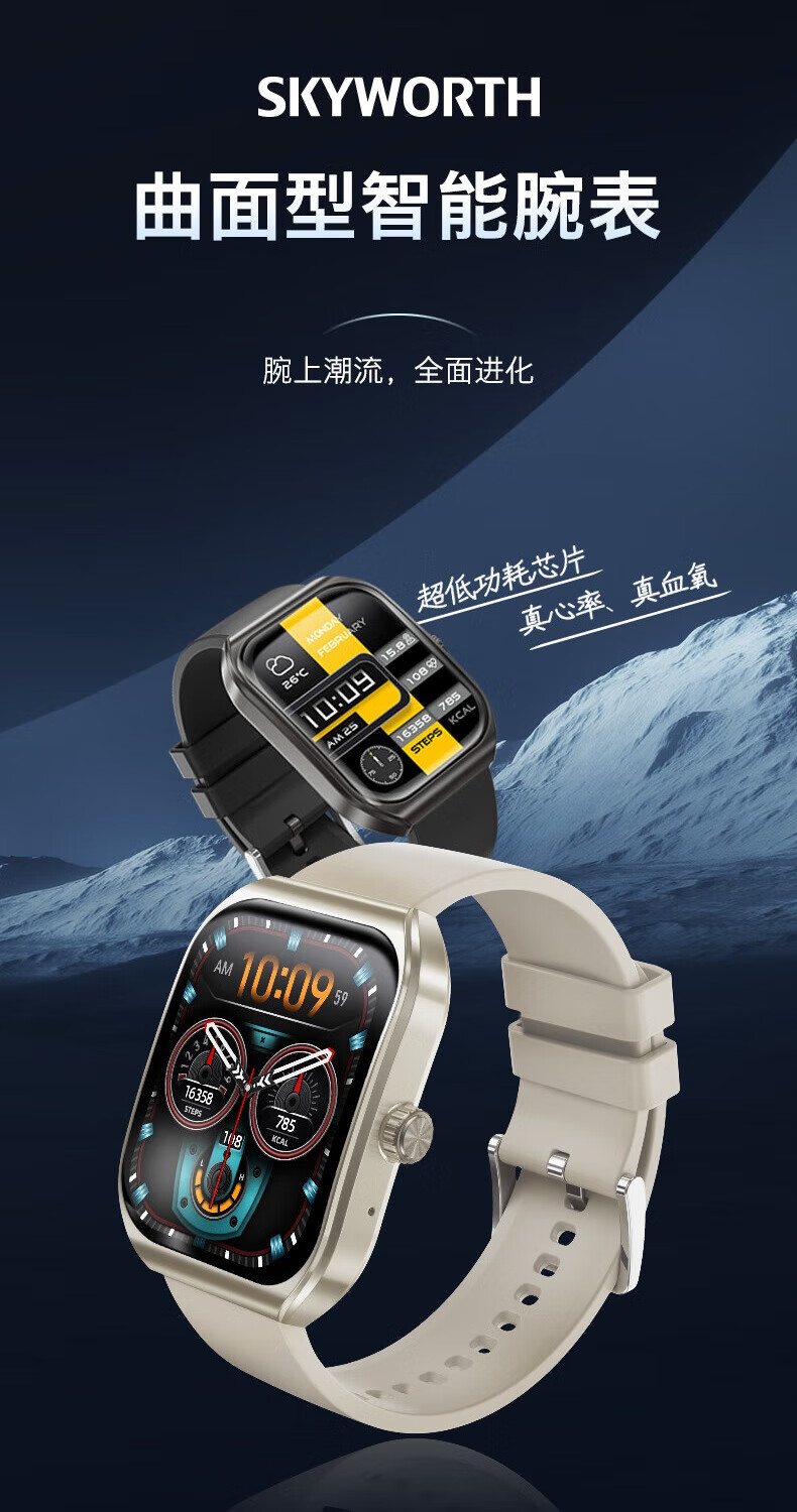 创维/SKYWORTH智能运动手表watch 4pro无线充电可接电话蓝牙听歌ai智能便携游戏跑步检测睡眠手表支付防水学生手表 额外赠送表带一副