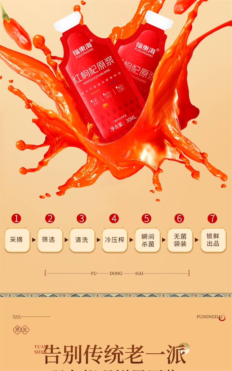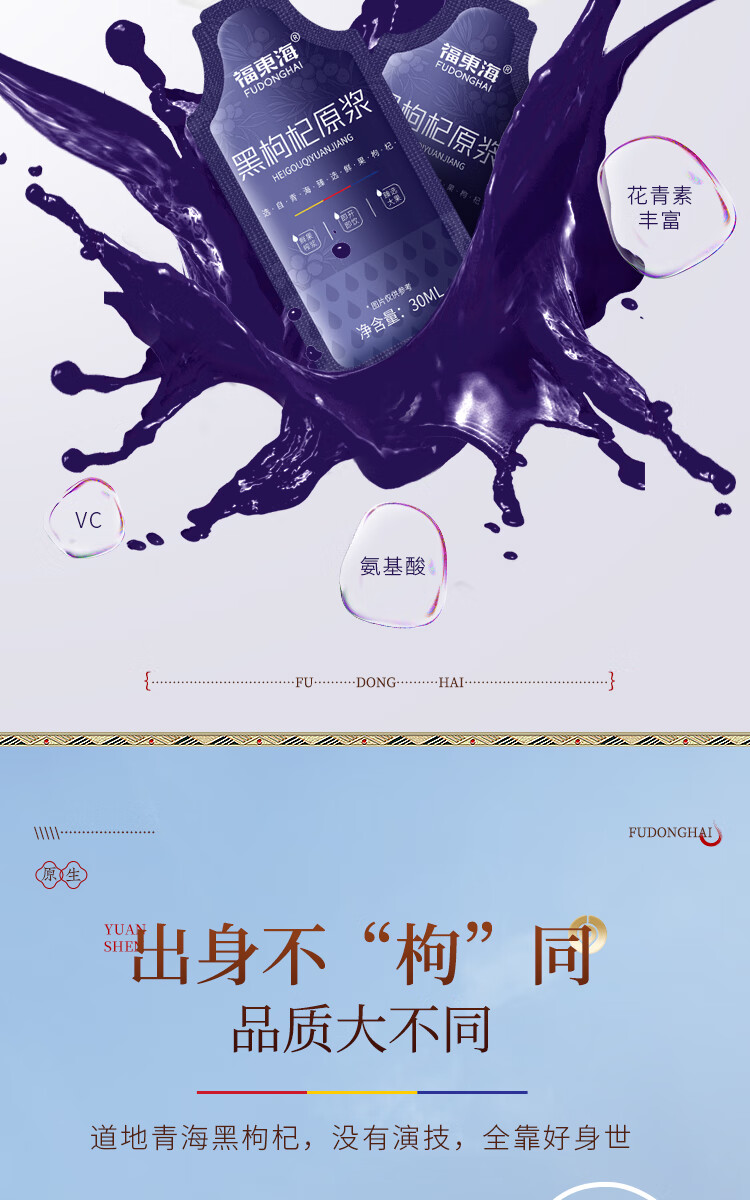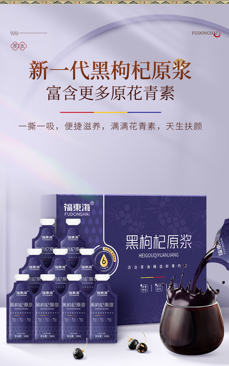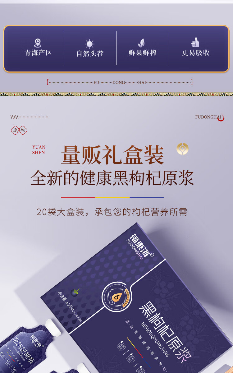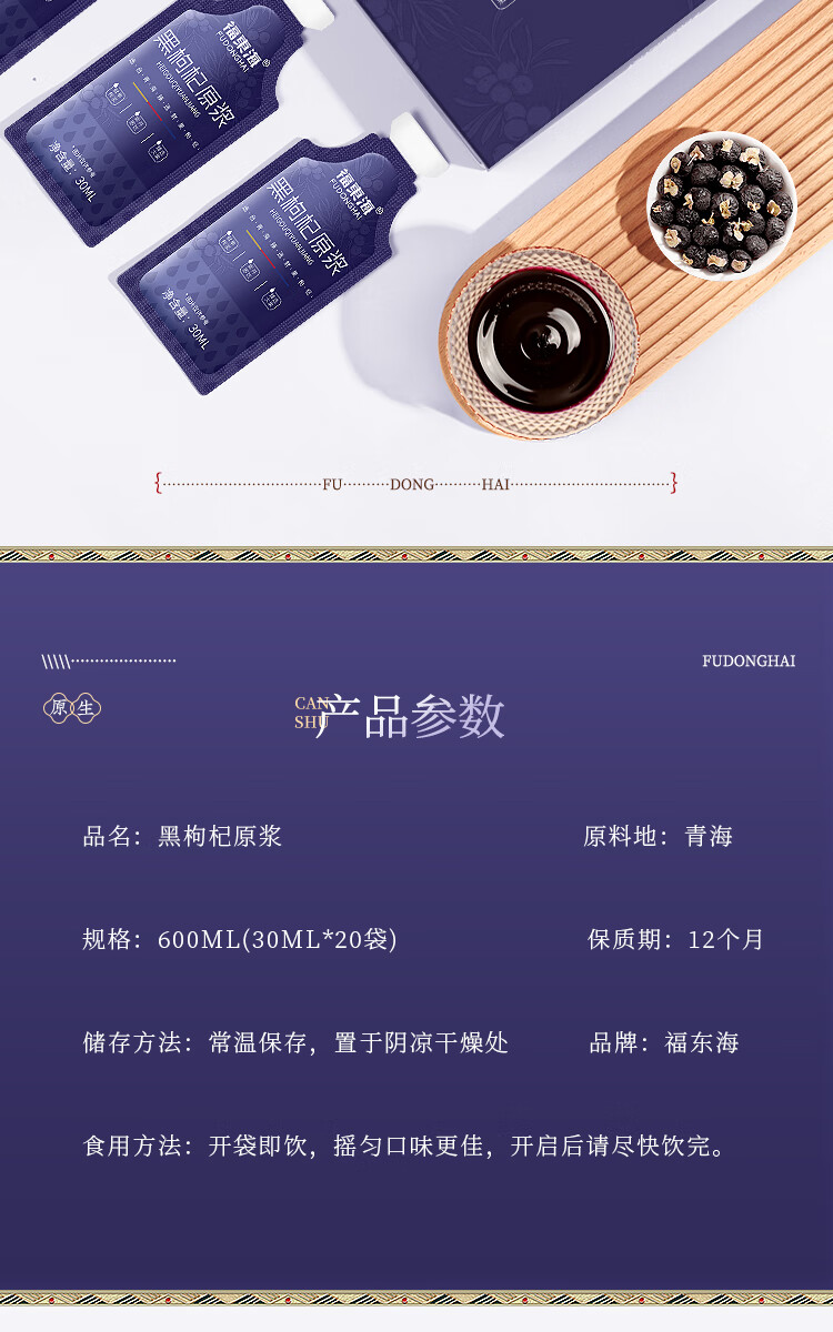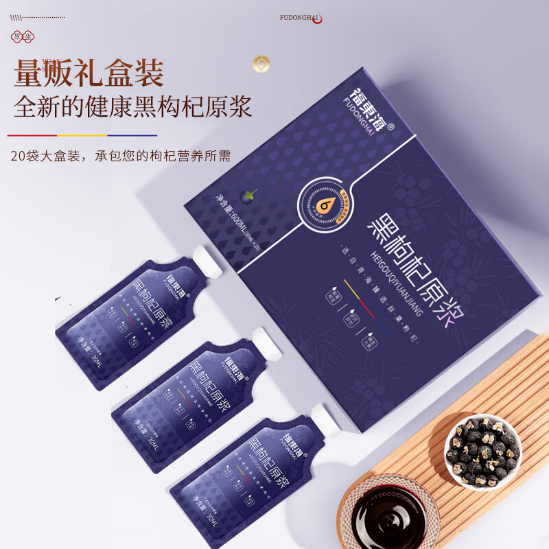 福东海黑红枸杞原浆600m l30ml*20袋 盒 年货好礼精美彩盒装