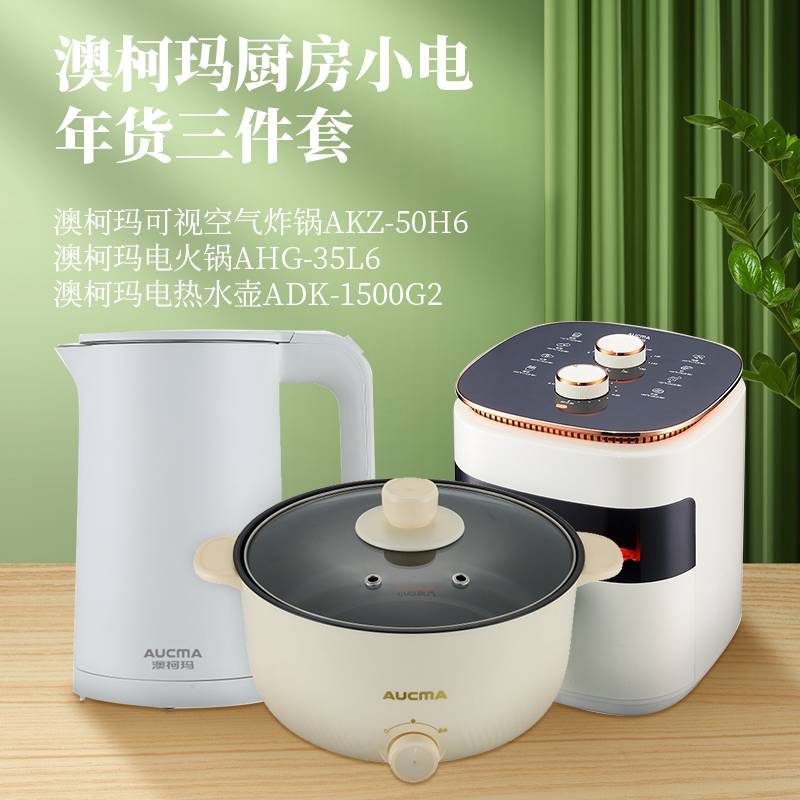 【组合产品套餐】澳柯玛厨房小电年货三件套澳柯玛可视空气炸锅AKZ-50H6+澳柯玛电火锅AHG-35L6+澳柯玛电热水壶ADK-1500G2