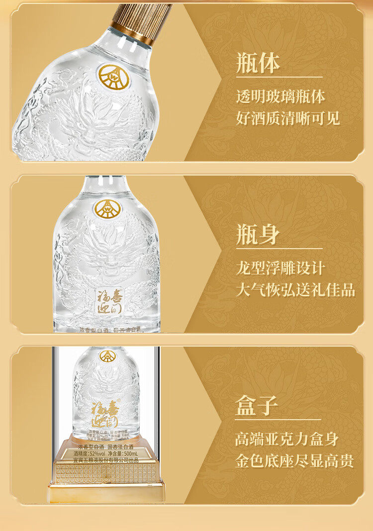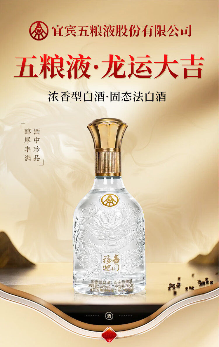 五粮液股份 福喜迎门福(水晶龙)52度 500ml*6瓶整箱 纯粮酿造 过年送礼宴请