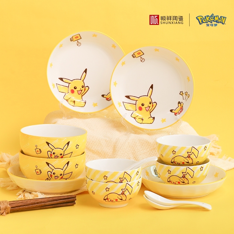 顺祥泰勒瓷碗宝可梦款萌彩联名十八件套皮卡丘家用餐具套装