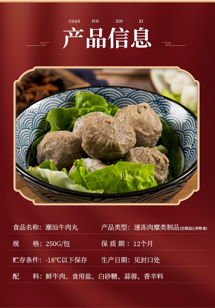 【4袋】喜礼予你潮州牛肉丸牛肉含量大于95%一级牛丸95分肉丸子正宗潮汕手打牛肉丸250g*4袋