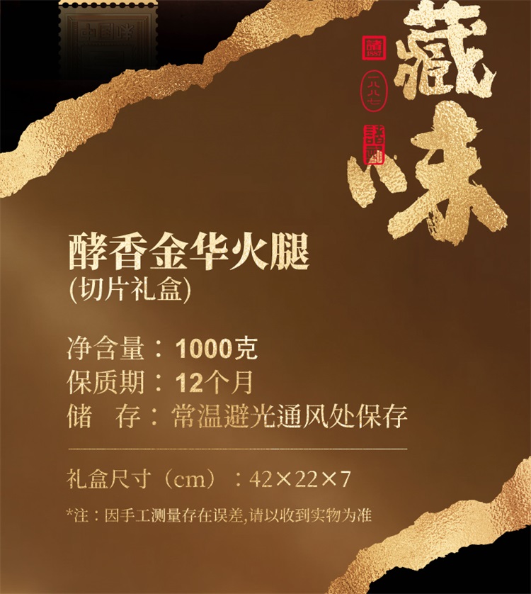 诸记诸老大酵香金华火腿切片礼盒1000g