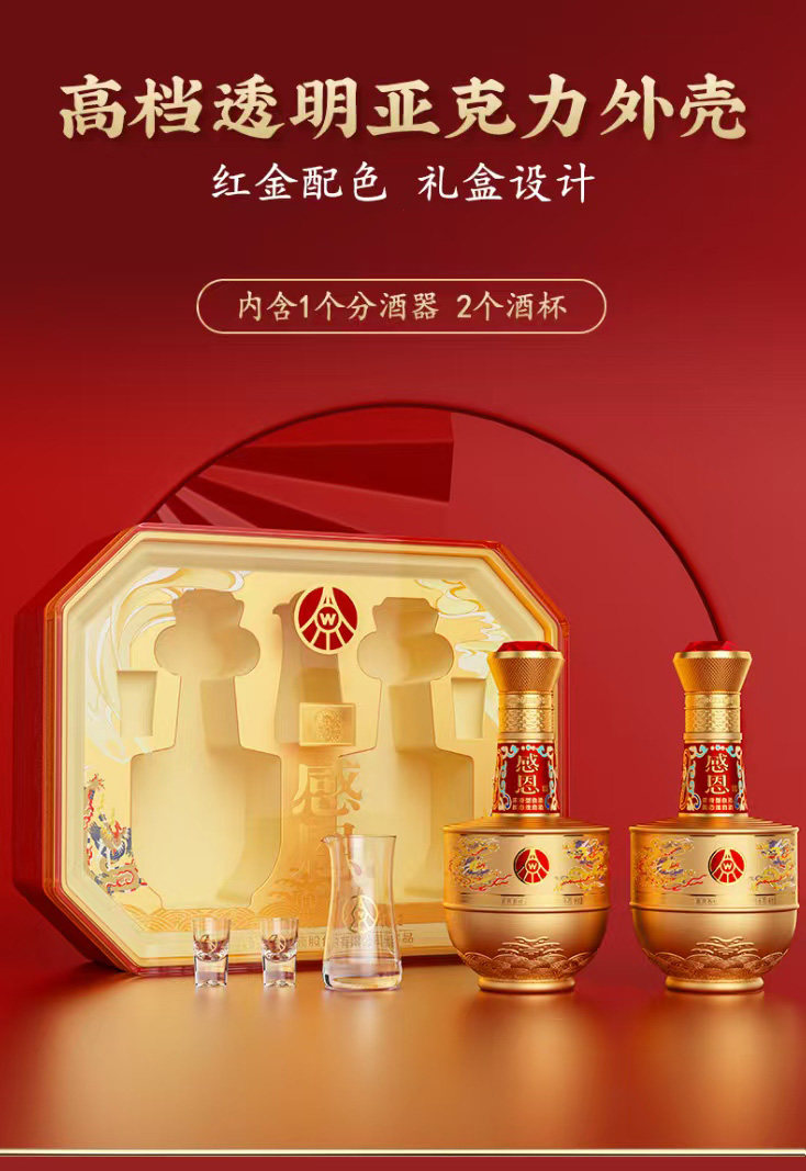 五粮液感恩酒白酒52度浓香型白酒 送礼礼盒 52度 500mL 2瓶 传承金礼盒装