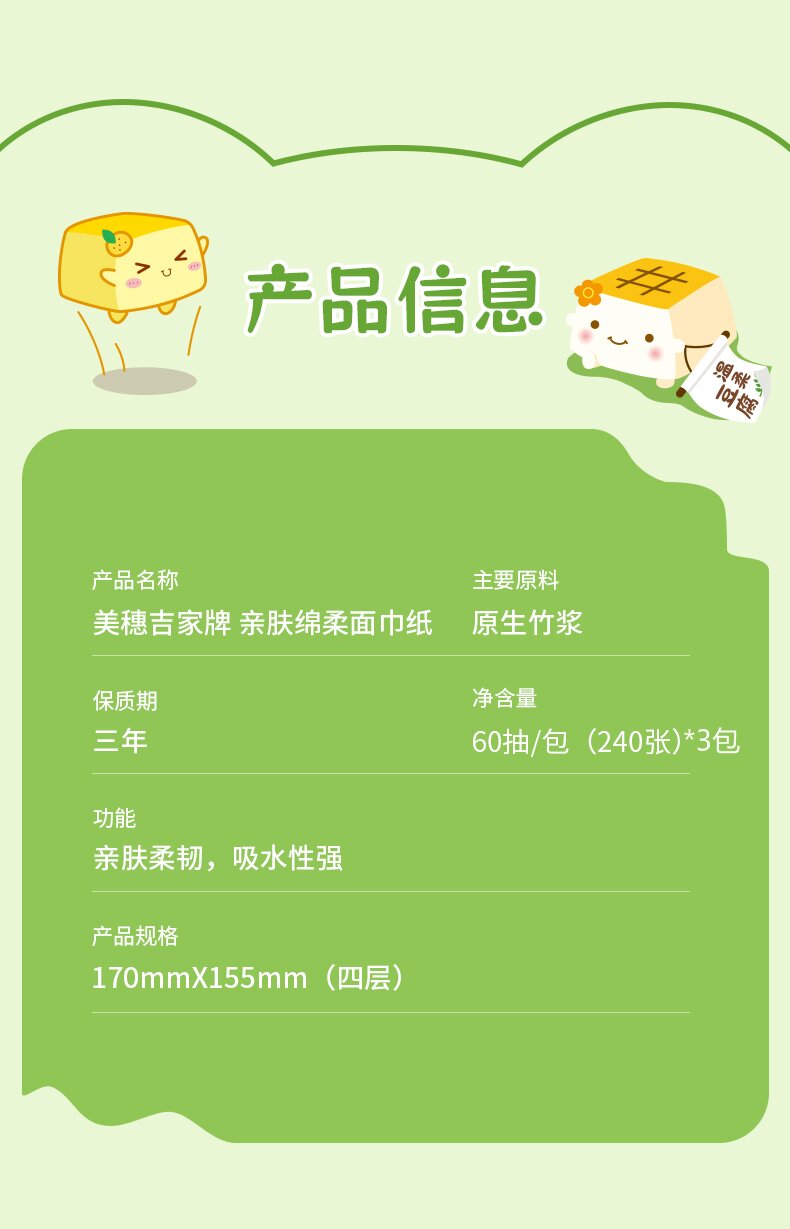 美穗吉家 亲肤绵柔面巾纸 原生竹浆4层60抽*3包 MIH-2404032
