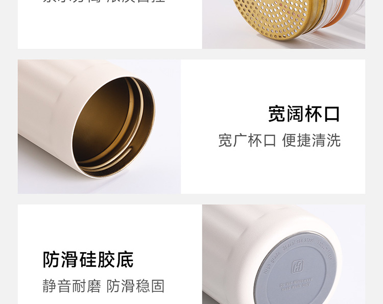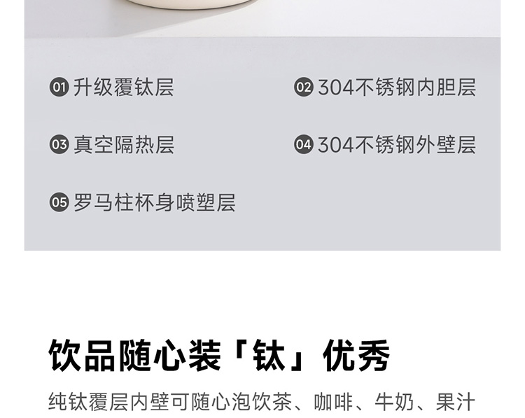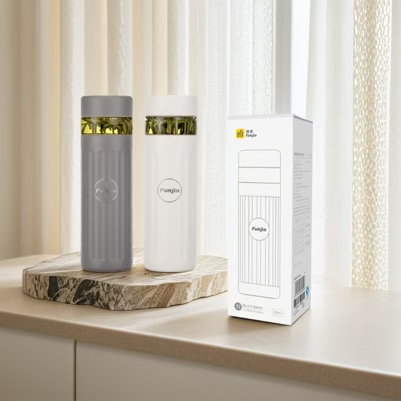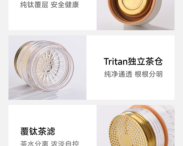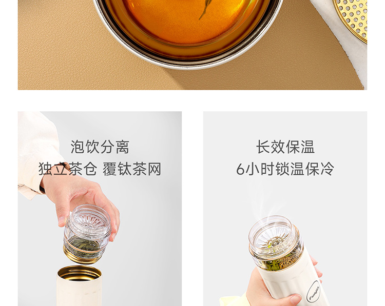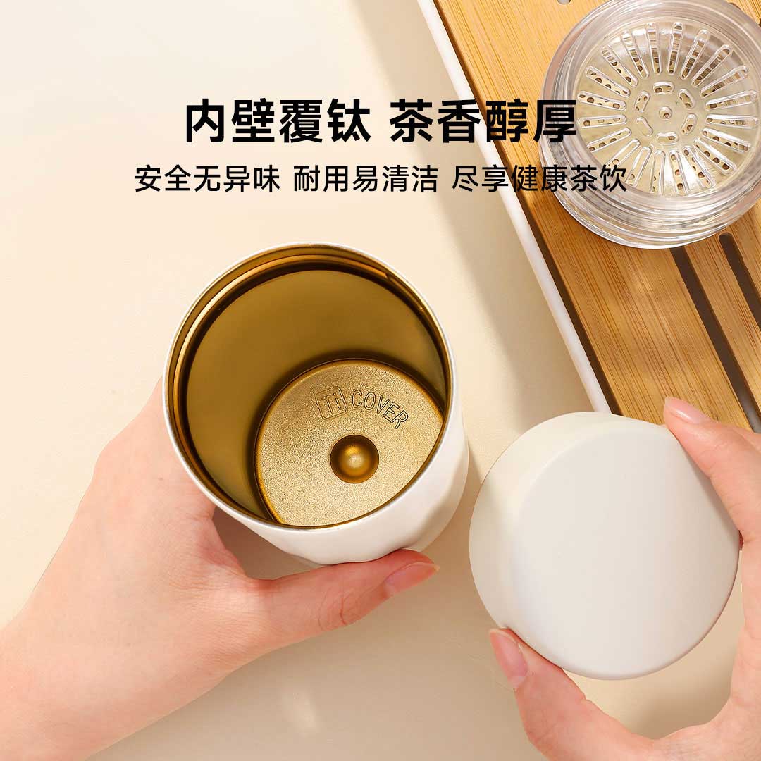 Funjia趣家覆钛茶水分离速开泡茶钛杯水杯一秒开盖保温杯杯子高端送礼车载办公杯500ml FJ-PC003