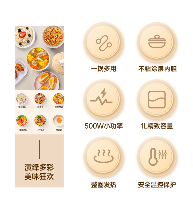 美的(Midea)电压力锅 5L 简易操作 旋钮 一锅双胆 电饭锅 MY-E501/YLE501