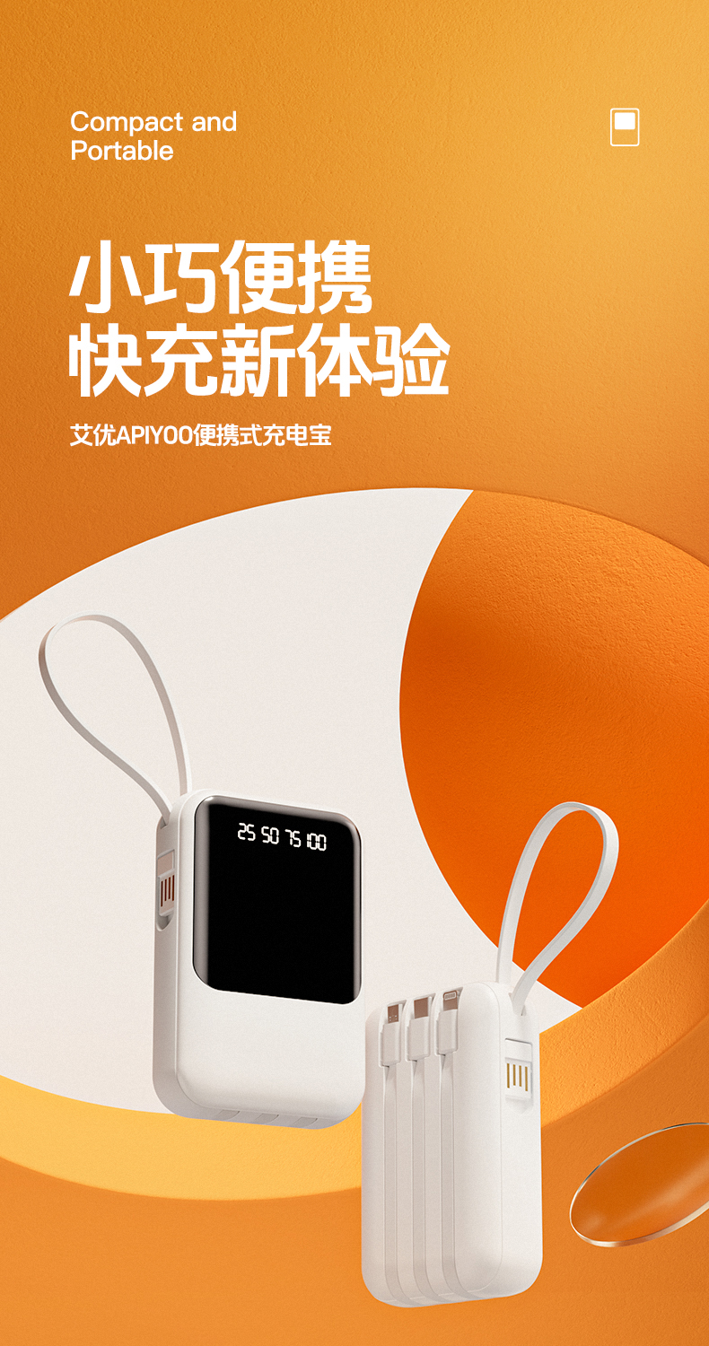 艾优多功能便携式充电宝T26 户外旅行 小巧便携 外出远行 多重防护 10000mah移动电源 可上飞机 LED照明 精美彩盒装