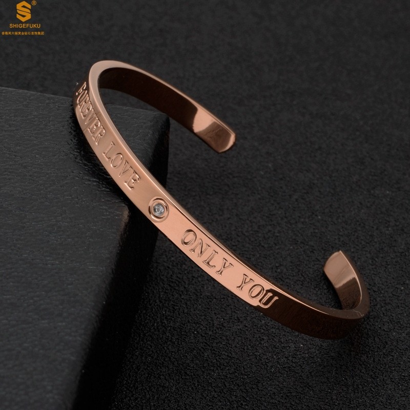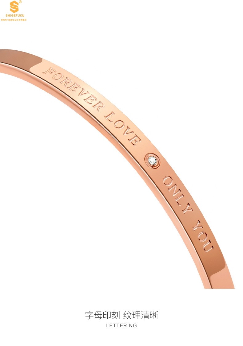 香港周六福18K镶钻南非真钻我只爱你一个人手镯