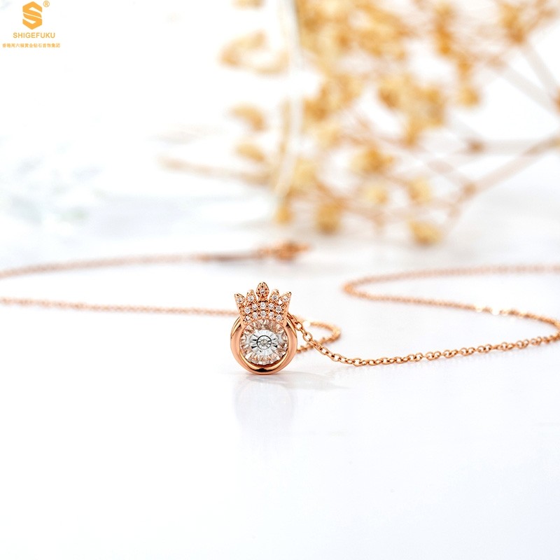 香港周六福黄金钻石首饰18K镶钻南非真钻灵动皇冠