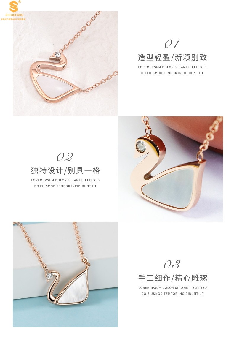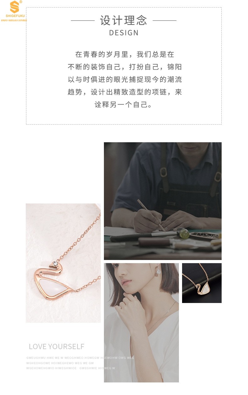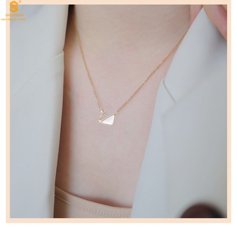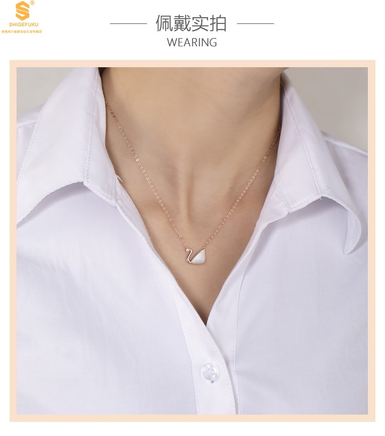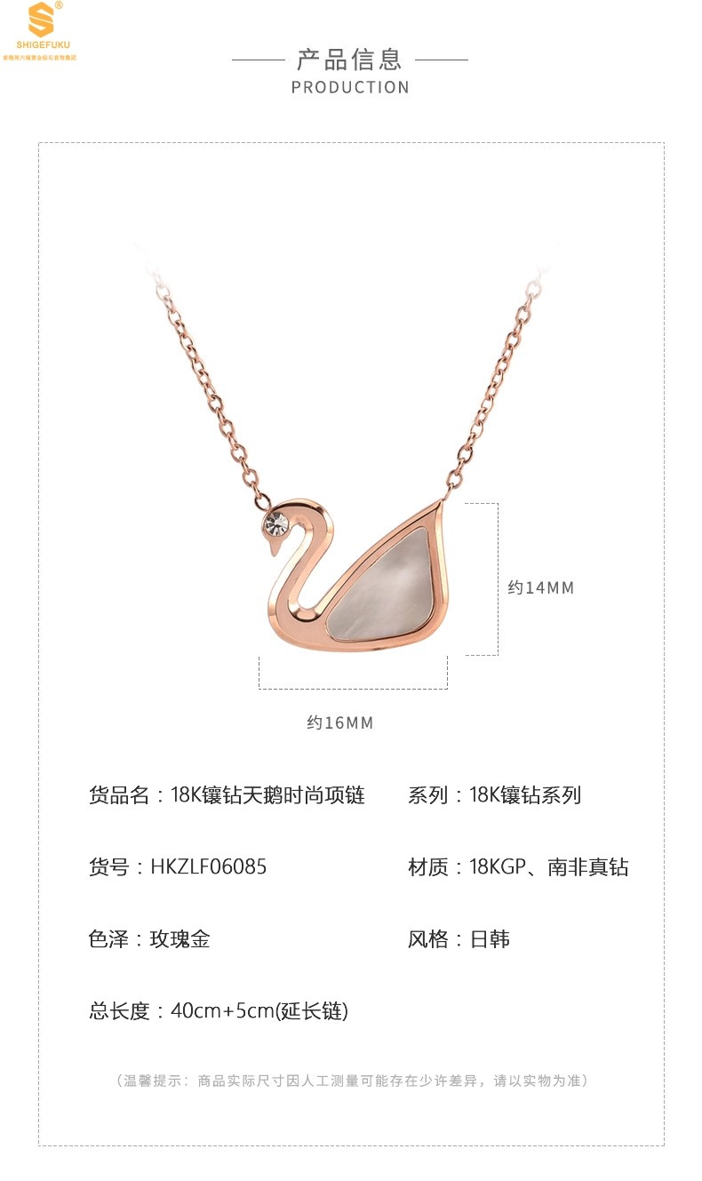香港周六福黄金钻石首饰18K镶钻南非真钻天鹅项链