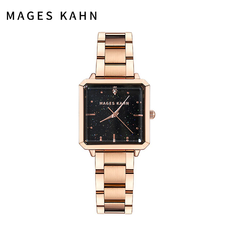 MAGES KAHN手表女士方形潮流星空石英表防水女表 星空黑面钢带MK6800