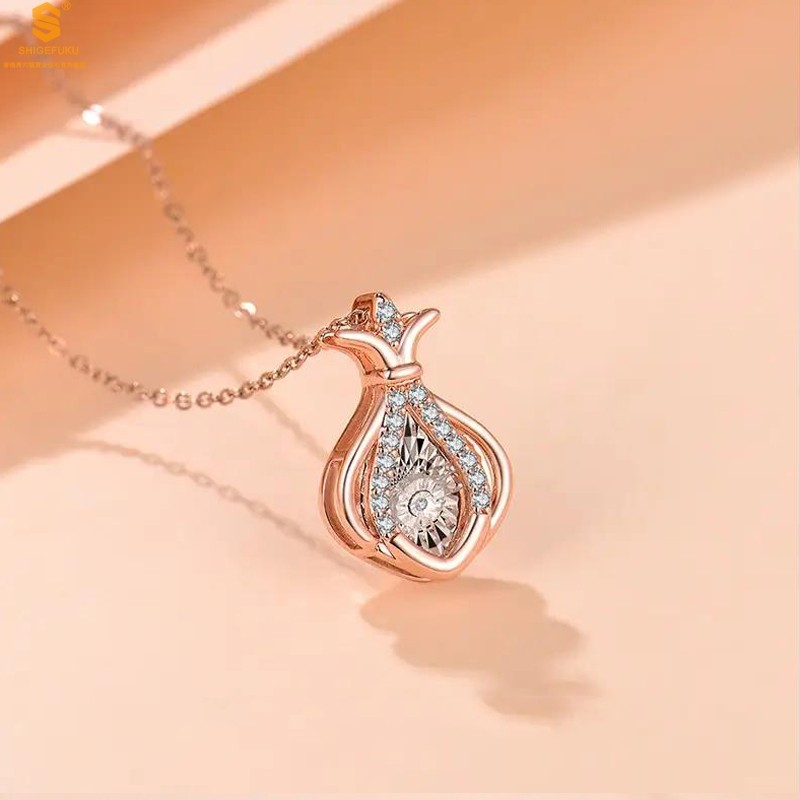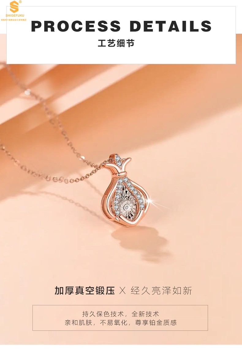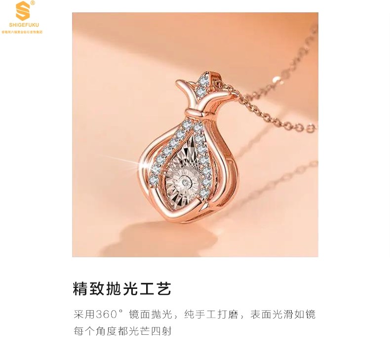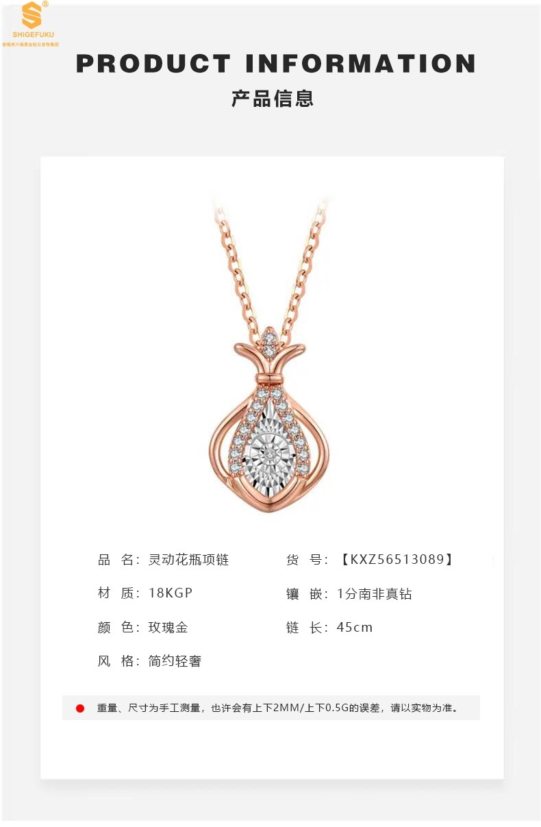 香港周六福黄金钻石首饰18K镶钻南非真钻灵动花瓶项链