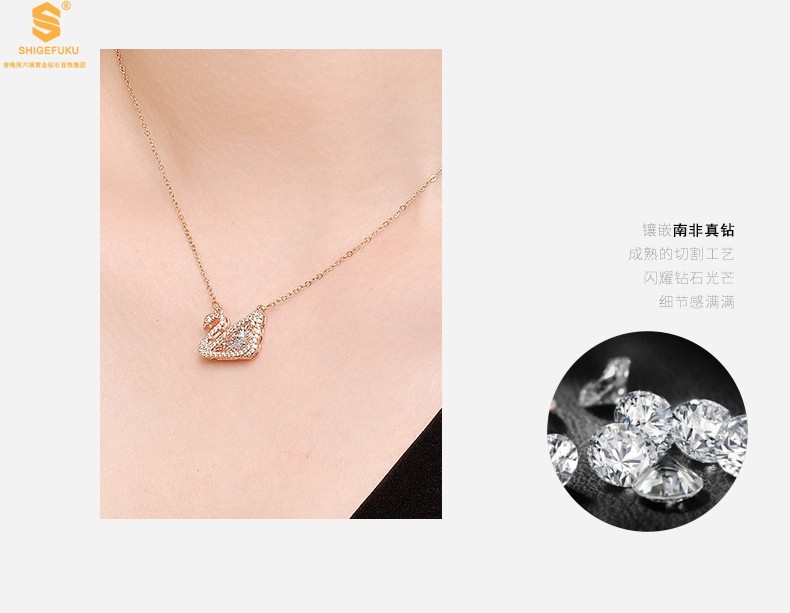 香港周六福黄金钻石首饰18K镶钻南非真钻灵动天鹅项链