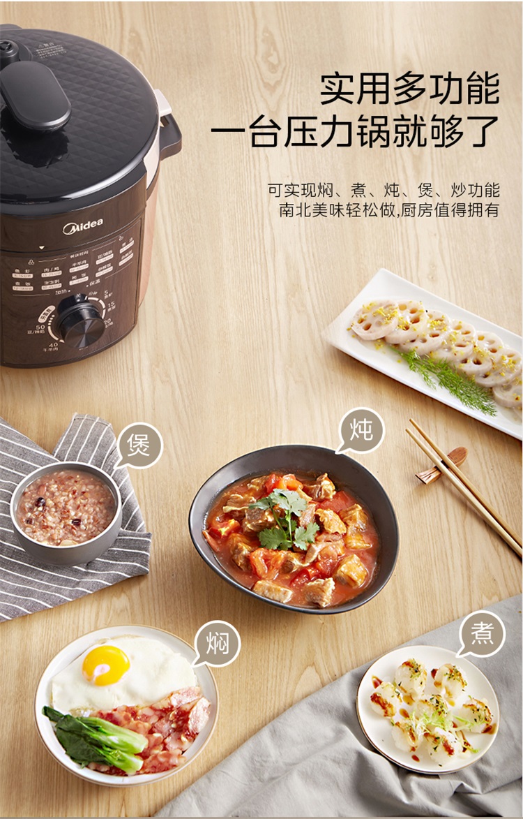 美的Midea电压力锅6L高压锅智能电高压锅家用高压电饭煲多功能电饭煲 MY-E601
