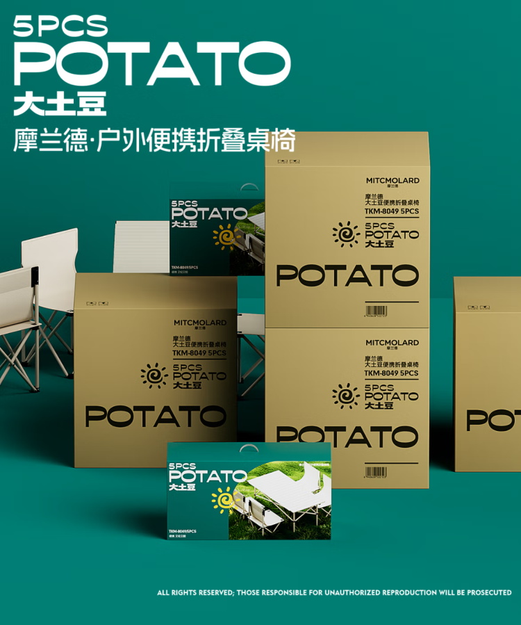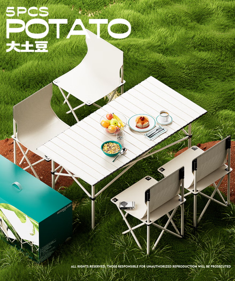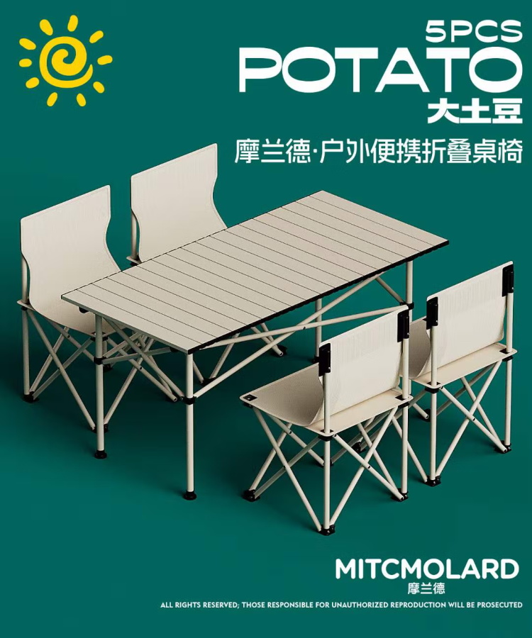 摩兰德大土豆便携户外折叠桌椅五件套 旅行休闲 桌子椅子 精美彩盒装 TKM-8049