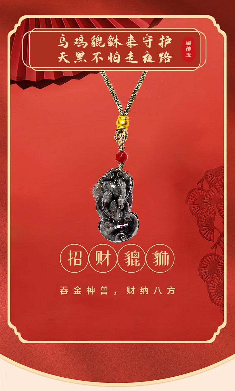 马传玉乌鸡种翡翠貔貅吊坠MCY132 精美包装带证书