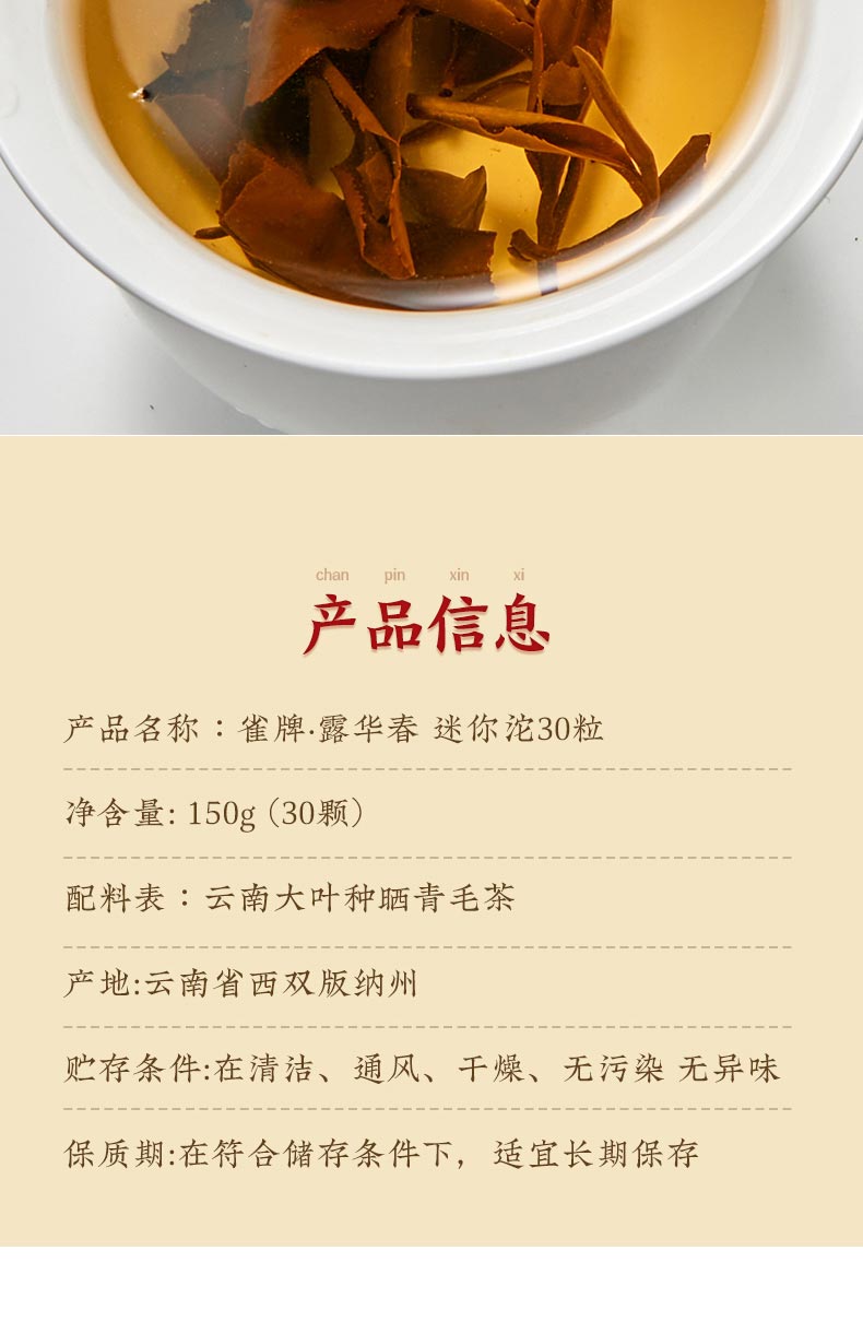 雀牌&露华春迷你沱普洱茶熟茶礼盒装30粒150g