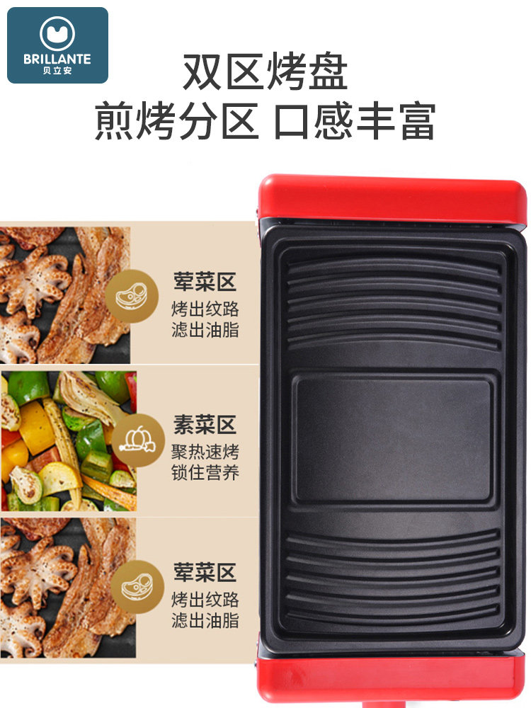 海尔旗下贝立安电烤架BDK02煎烤两用含烤盘