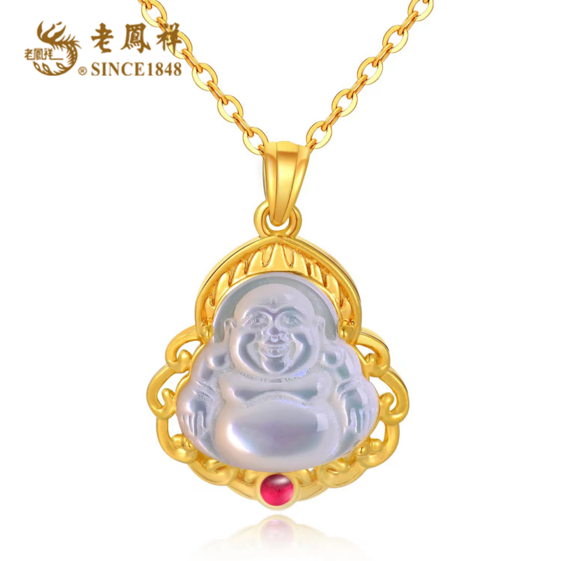 老凤祥真金18K金镶嵌白贝母弥勒佛吊坠LFXJW225019