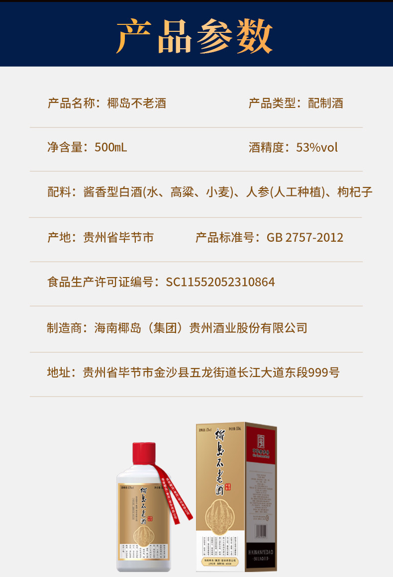 椰岛不老酒草本酱酒整箱装53度500ml*6瓶
