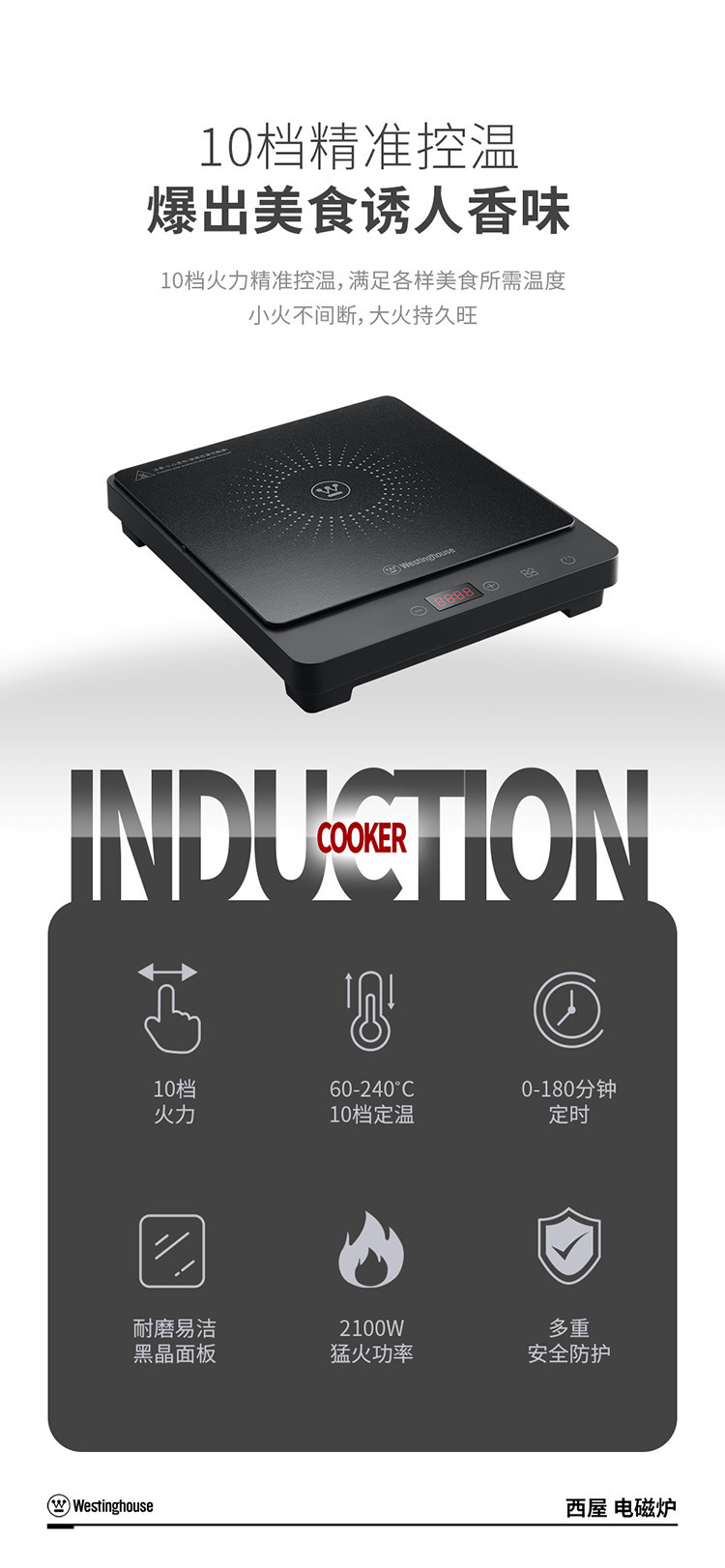 西屋Westinghouse电磁炉 普区包邮 10档火力调节精准控温磨砂面板耐刮耐磨WCL33
