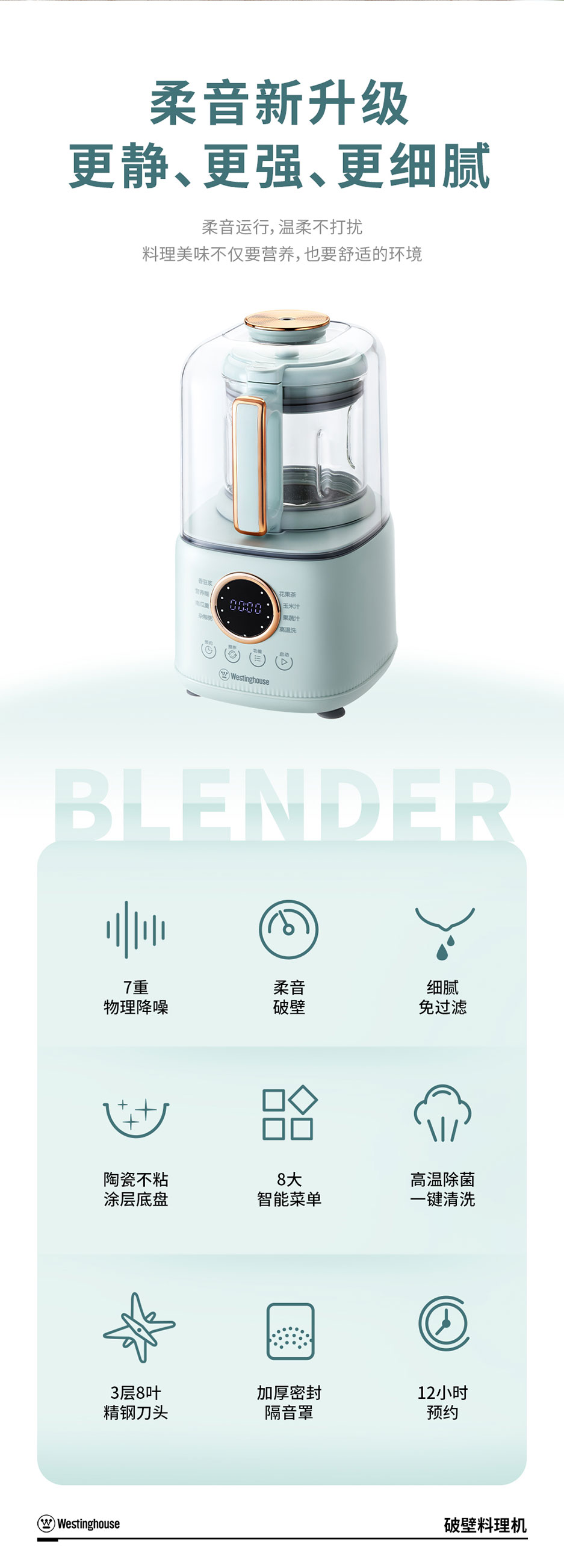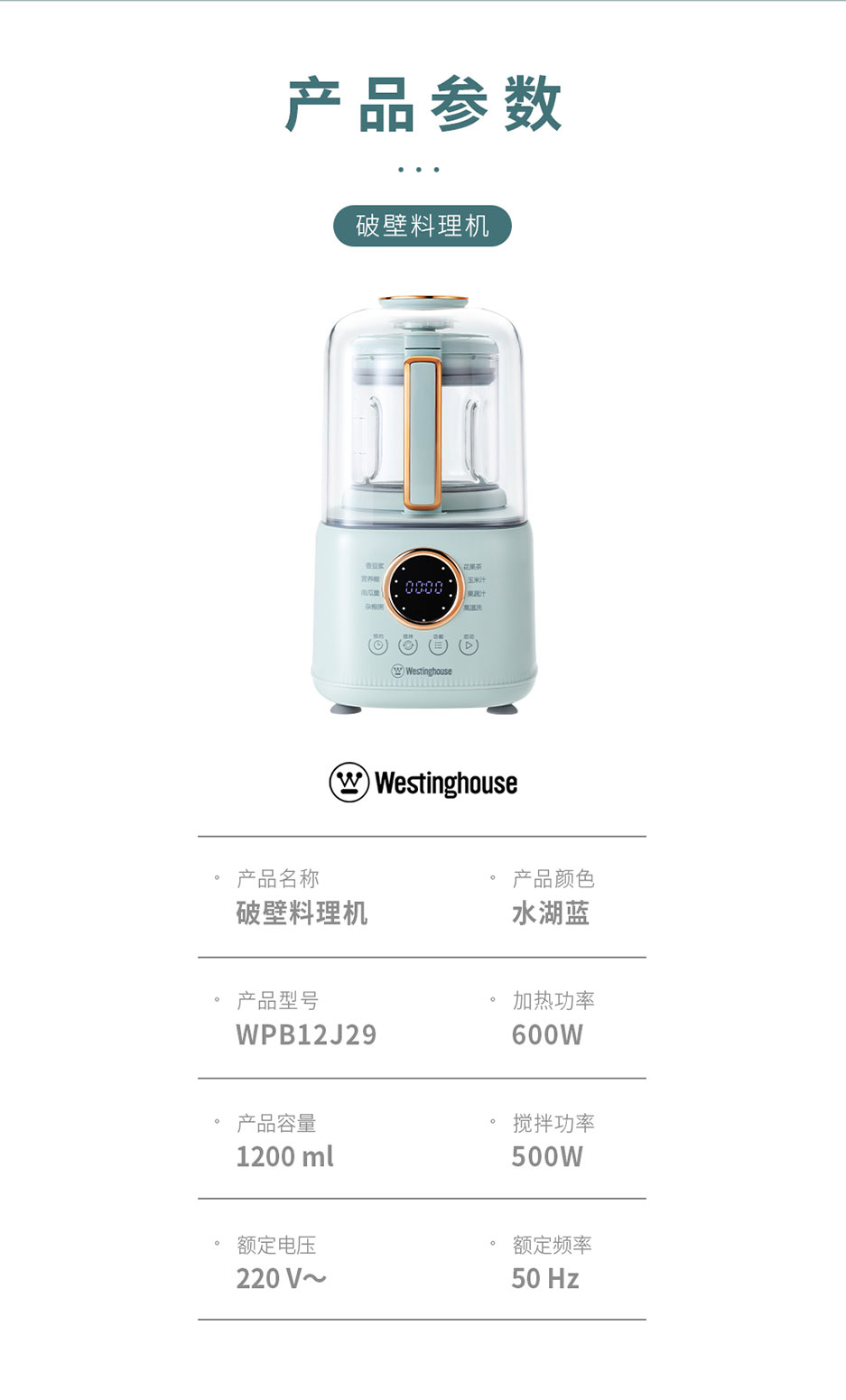 西屋Westinghouse柔音破壁料理机 普区包邮 加厚隔音罩1200ml WPB12J29