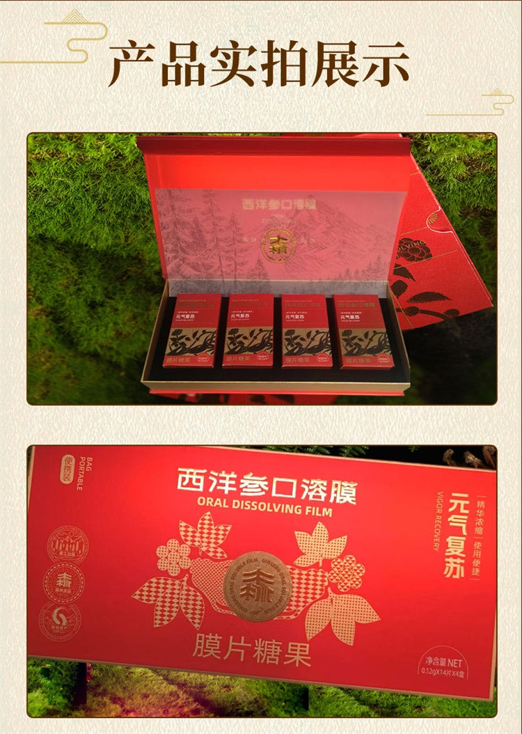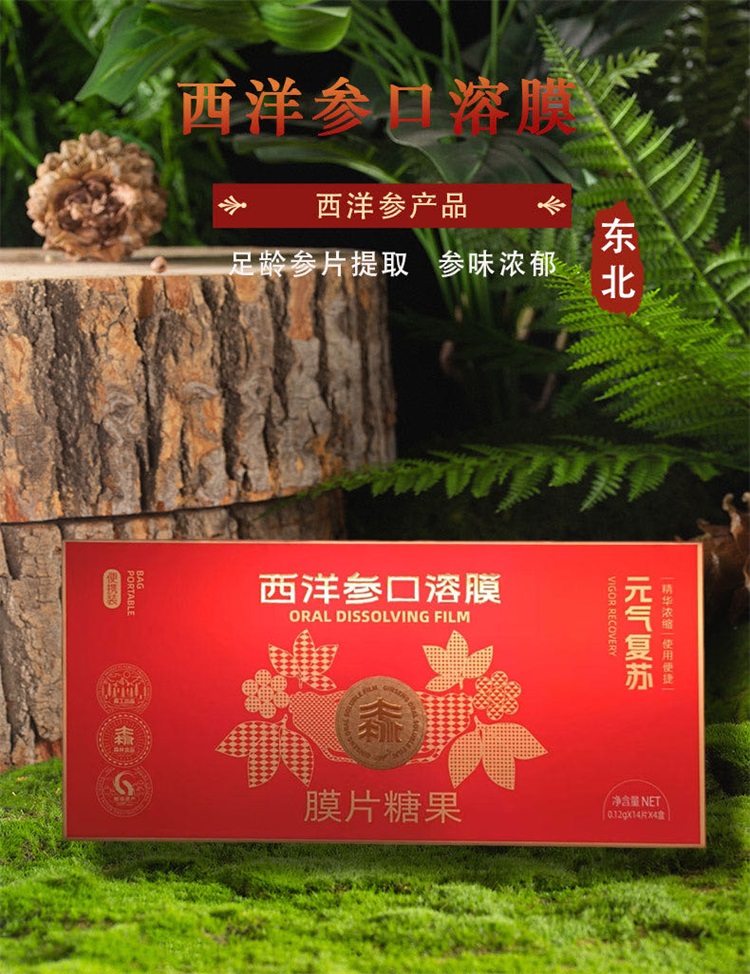 龙江森工西洋参口溶膜膜片糖果120mg*14片*4盒
