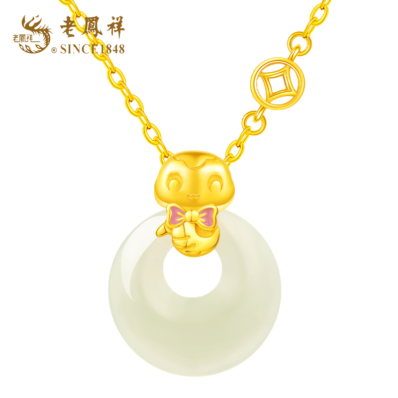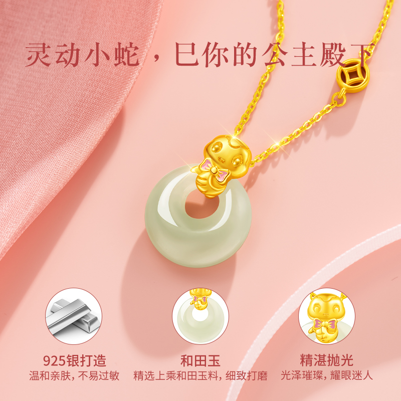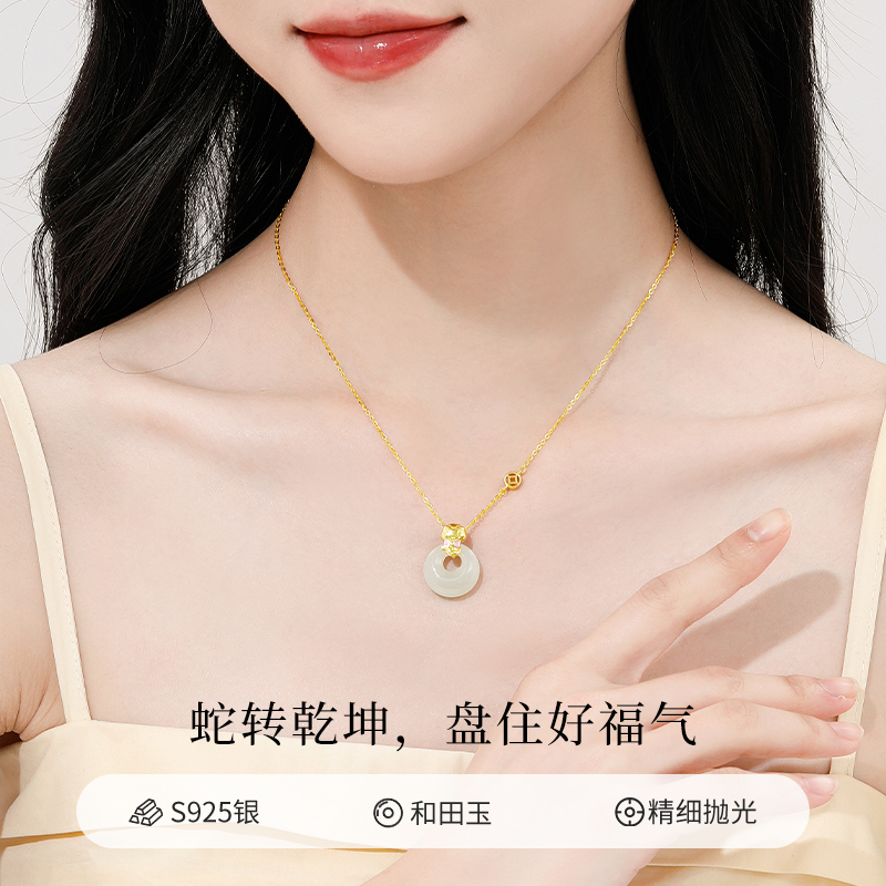 【每证一品】老凤祥925银和田玉公主蛇平安扣项链 S925银 YMB3511241101 成本价:¥ 186.00