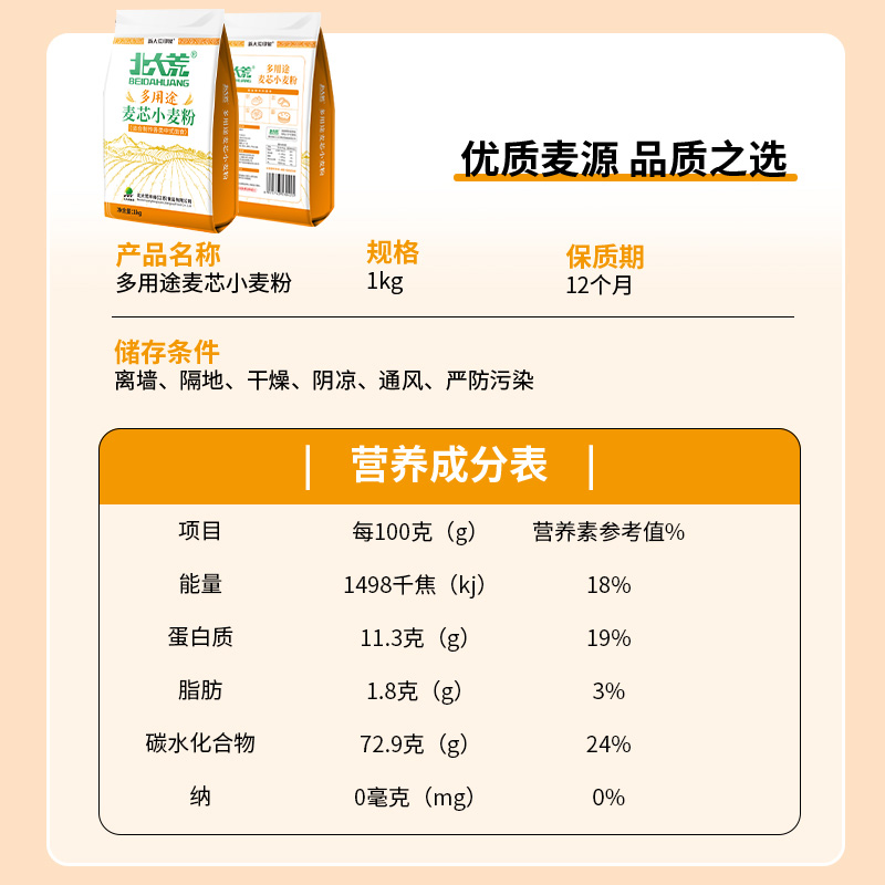 北大荒集团新大荒印象多用途麦芯小麦粉1kg北大荒面粉