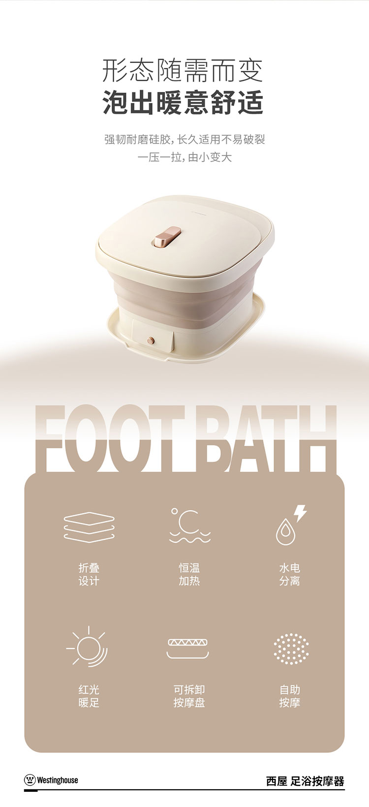 【西屋Westinghouse】折叠足浴按摩器 普区包邮 水电分离智能控温WZY417