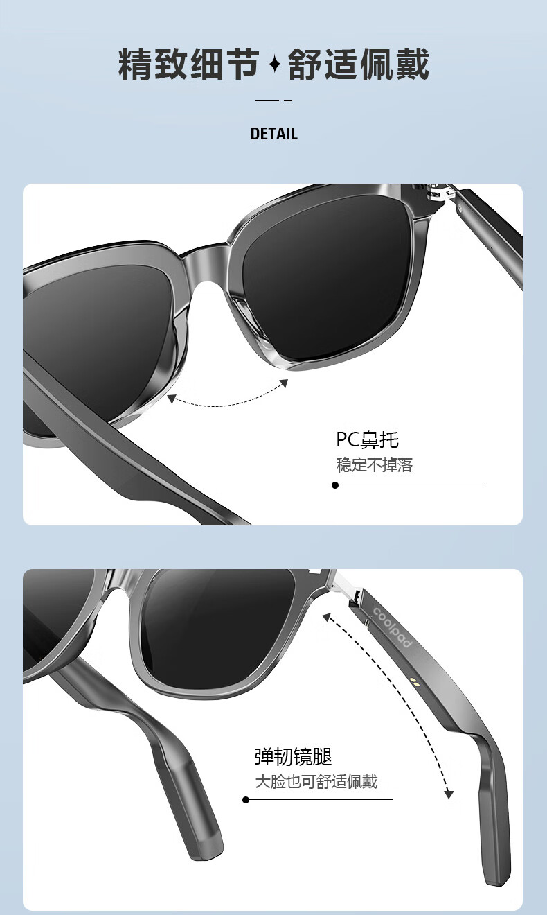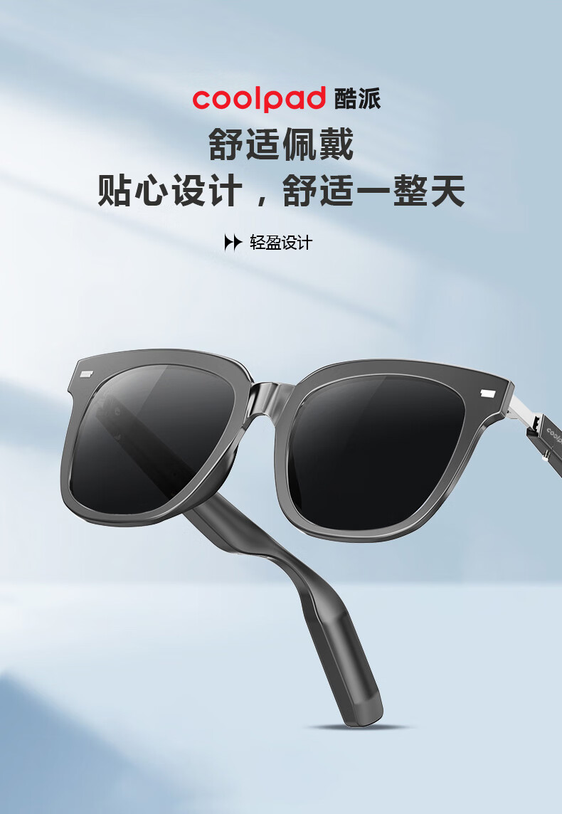 酷派Coolpad 智能音乐蓝牙偏光眼镜 防蓝光防漏音通话降噪超强续航 黑色CP-LYYJ01 开车出行户外运动登山户外骑行 多场景适用