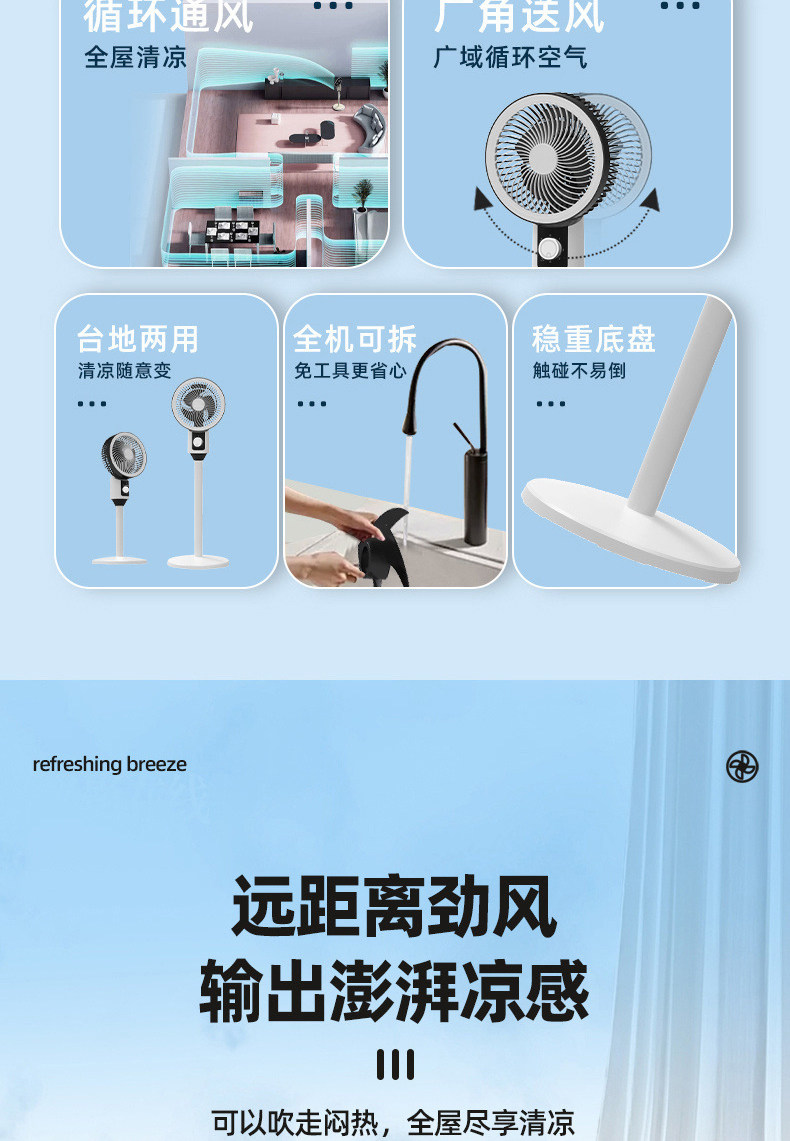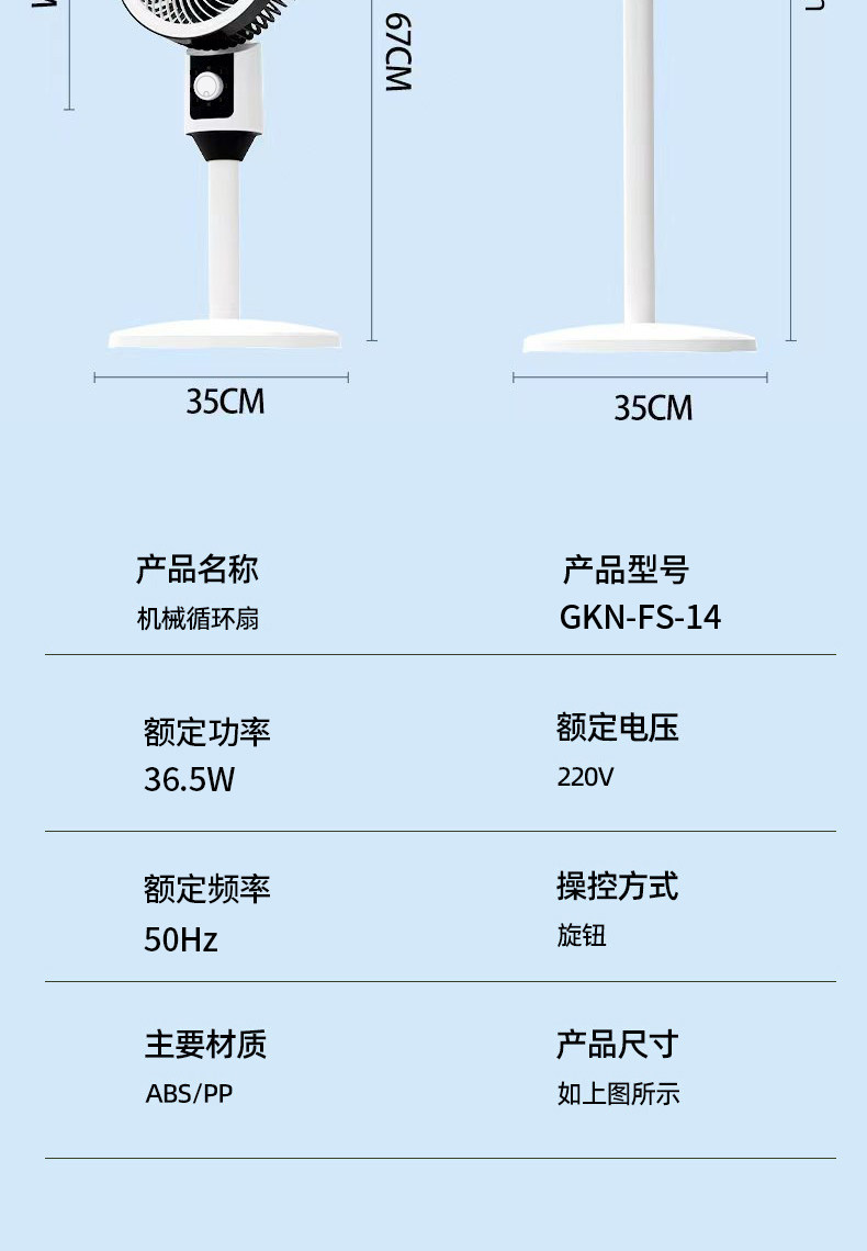 格卡诺多功能空气循环扇家用摇头桌面立式电风扇GKN-FS-14(黑白款)