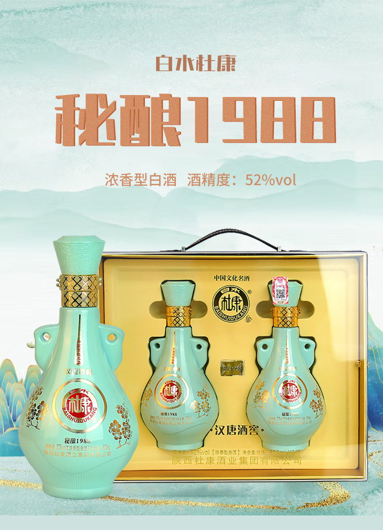 白水杜康汉唐酒窖秘酿1988酒浓香型白酒52度500ml*6瓶/箱