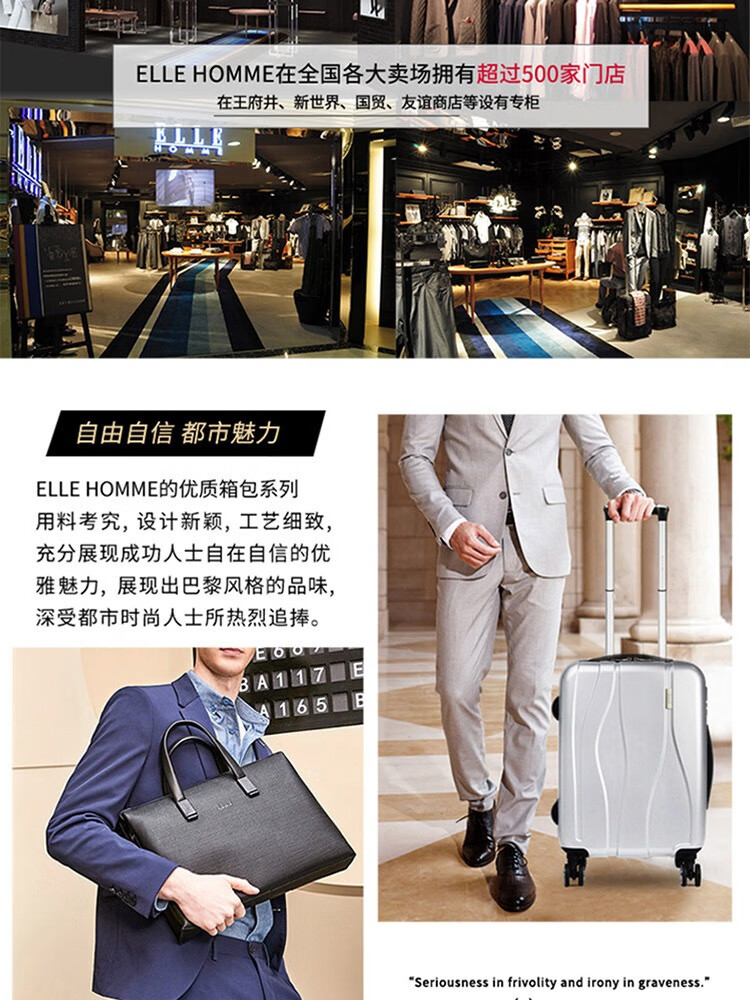 ELLE HOMME网红款商务休闲出差旅行双肩包 电脑包 背包 书包 蓝色 EL-D8619