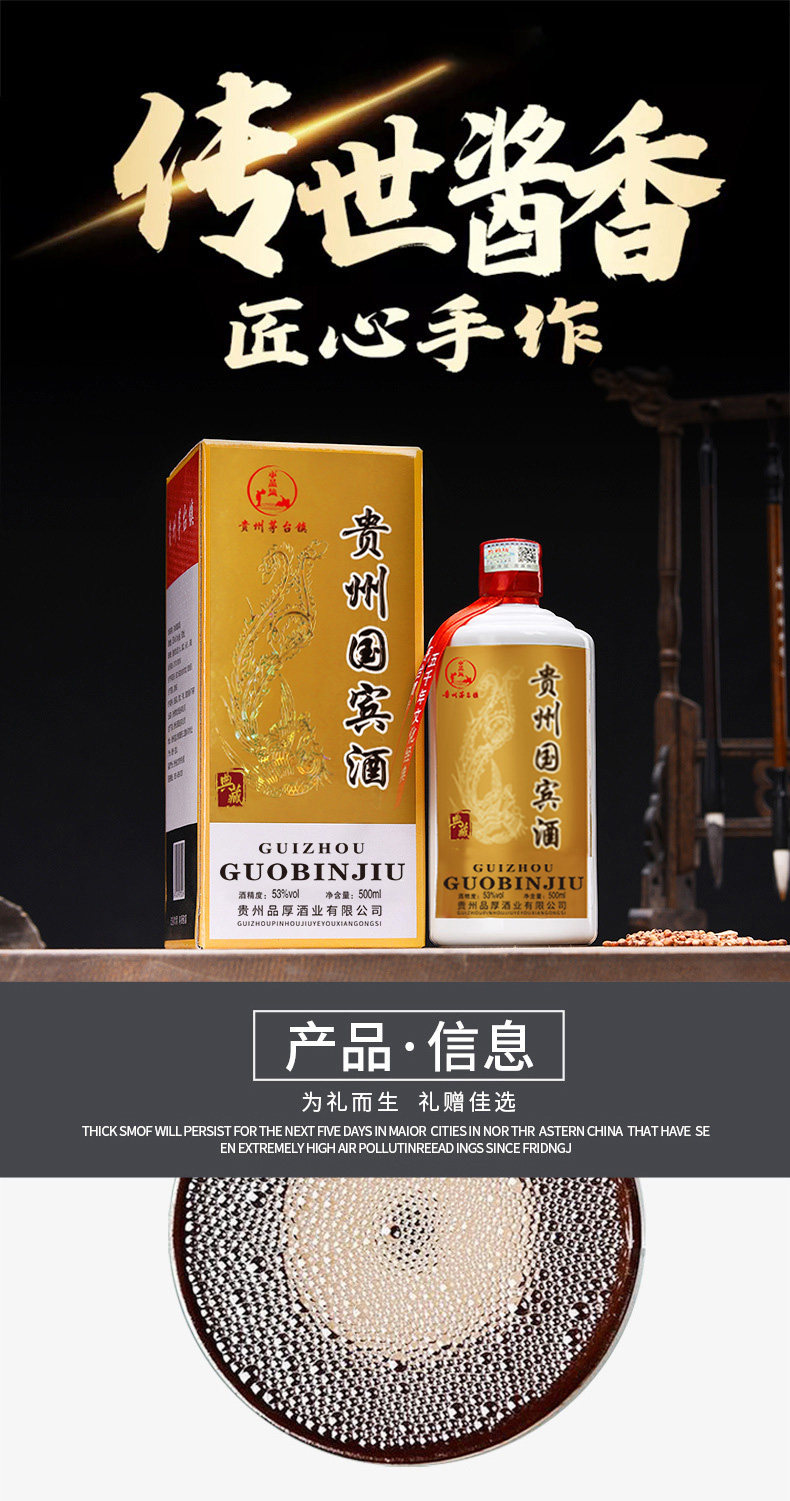 小品仙贵州国宾酒53度酱香型500ml*6瓶/箱
