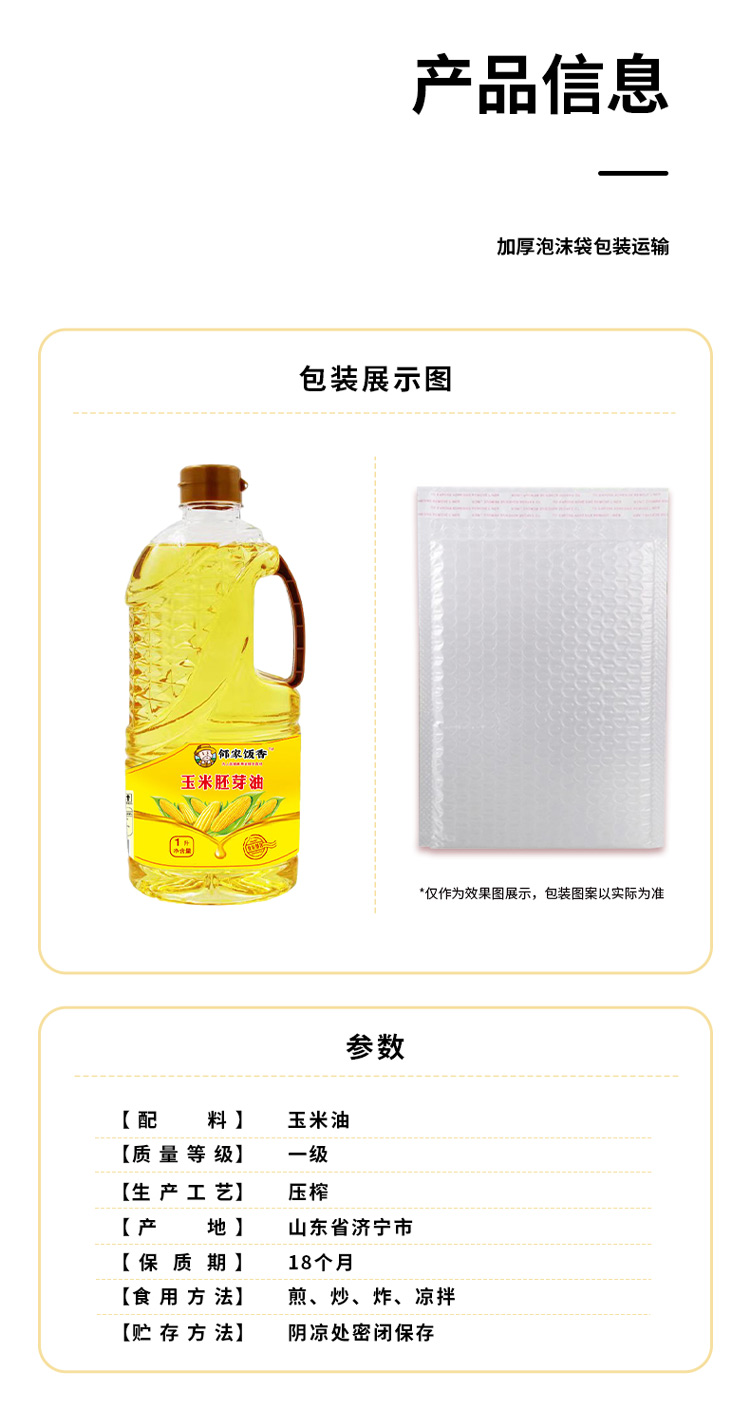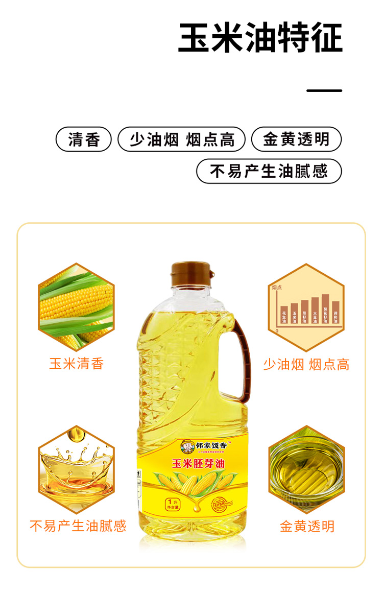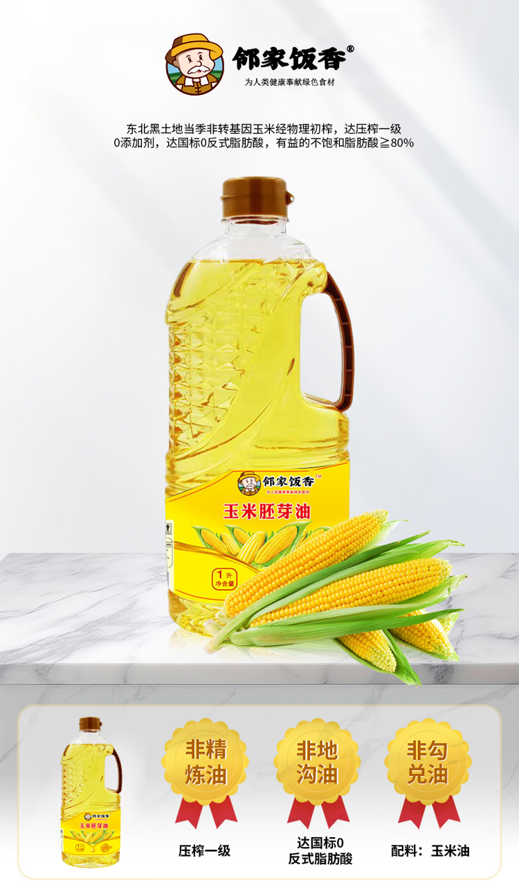 邻家饭香 非转基因 物理压榨一级玉米胚芽油 1L/瓶