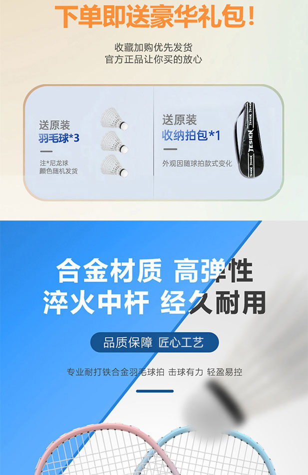 特斯恩泡棉款羽毛球拍 浅绿TSN-PM01 高颜值轻手感 送原装羽毛球3个+收纳拍包