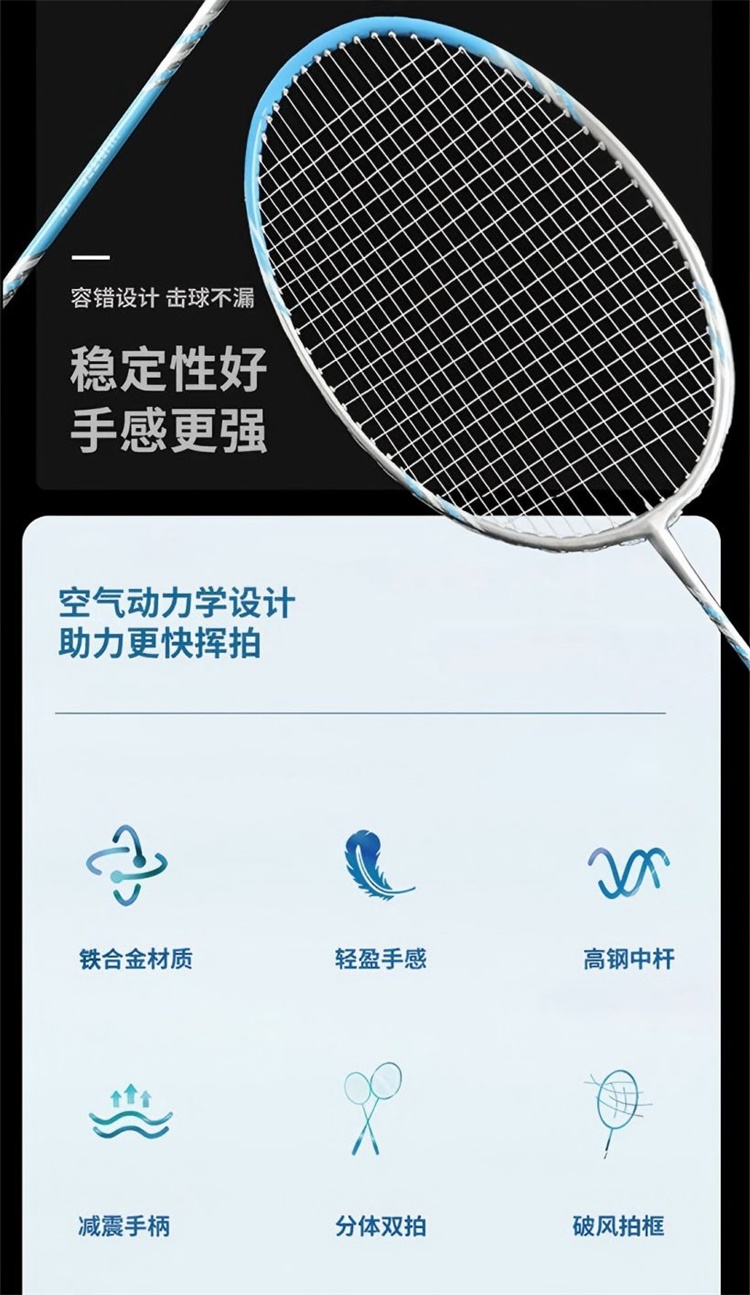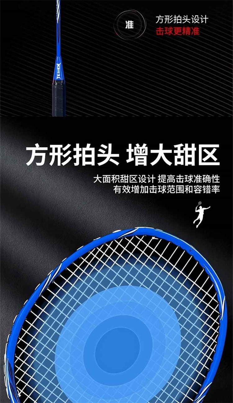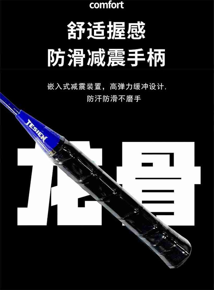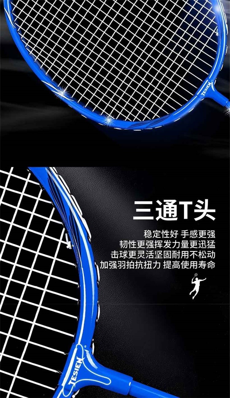 特斯恩铁合金分体羽毛球拍 蓝色TSN-D08 高颜值轻手感 送原装羽毛球3个+收纳拍包