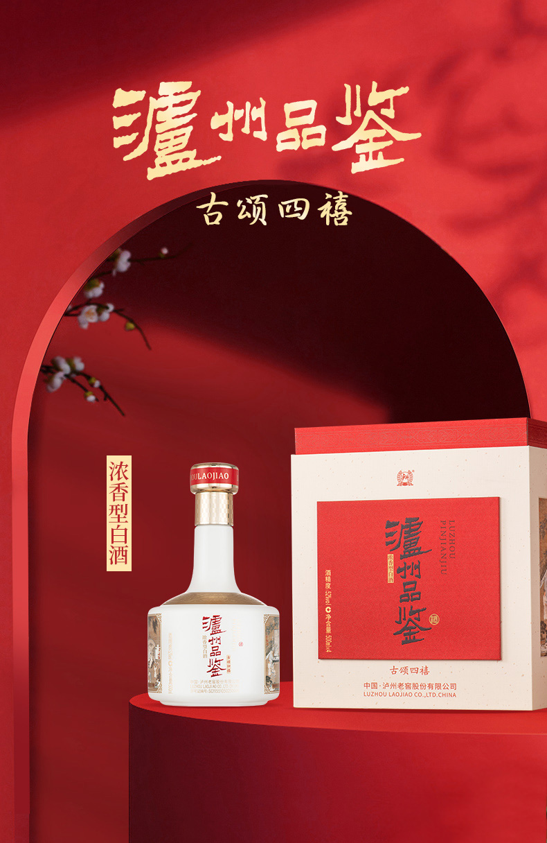 泸州品鉴 古颂四禧 5 泸州老窖股份出品 52度浓香型白酒 500ml*4瓶 手里礼盒装