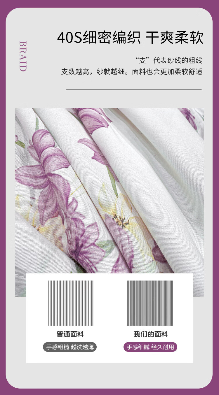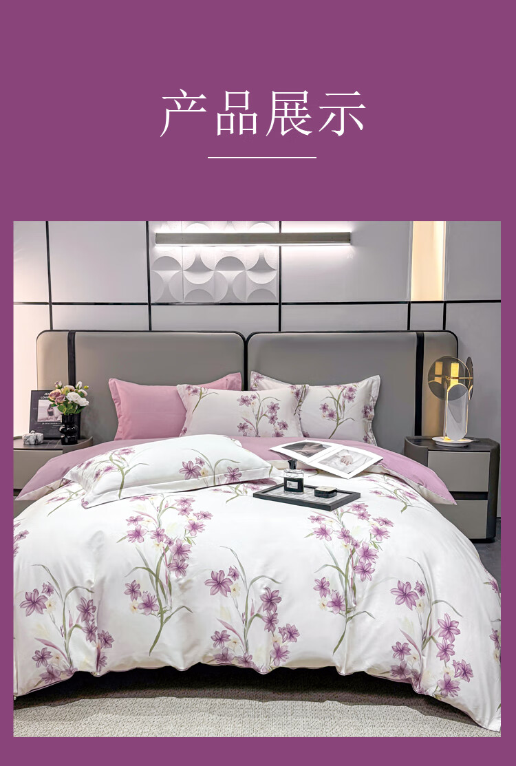 慕思纯棉四件套紫韵谧境纯棉四件套 全棉面料时尚AB面精美包装礼盒QSZ1-010