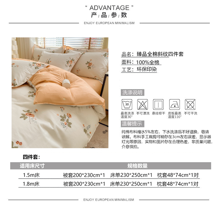优艺尚 臻品全棉斜纹四件套-【街角咖啡灰/安娜花园 2个花色可选】床上用品 纯棉 U24-J829【被套200*230、床单230*250、枕套48*74】