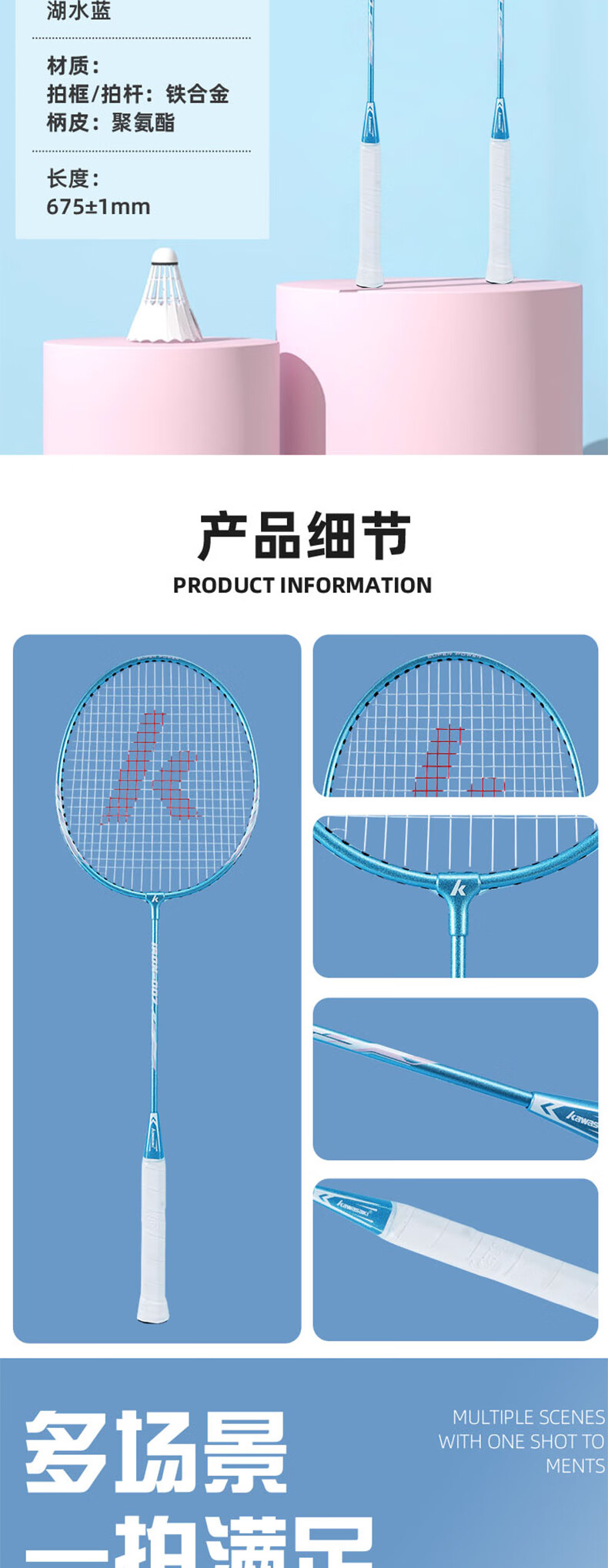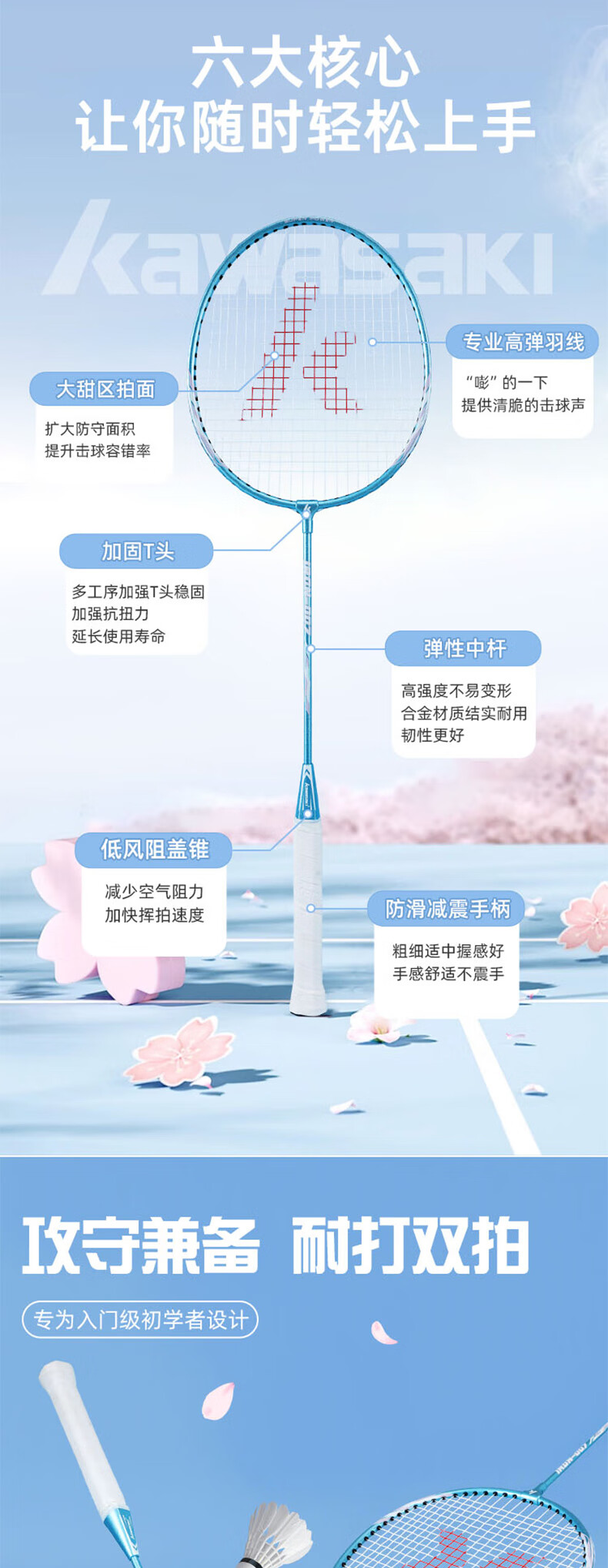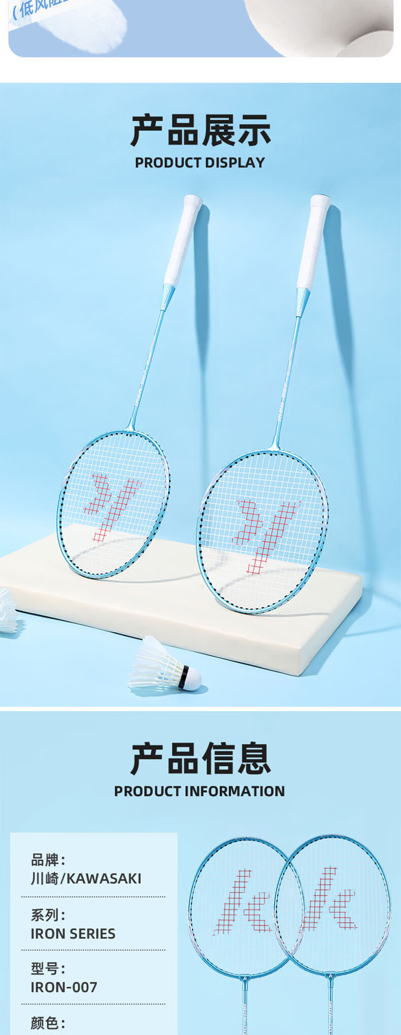 川崎/KAWASAKI 羽毛球拍对拍双拍成人耐用型训练套装IRON-007 湖水蓝【已穿线 不带球】